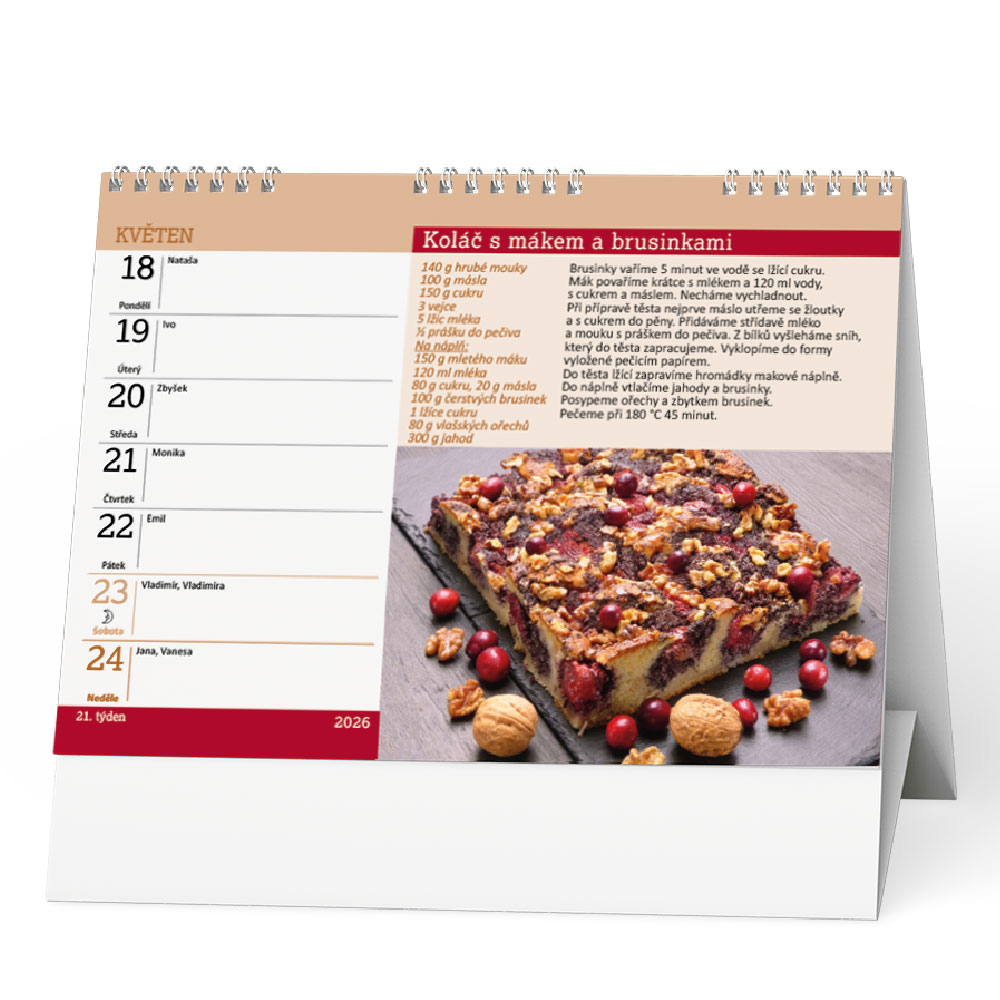 zoznam receptov, tabuľkový kalendár aktuálneho a nasledujúceho roku,