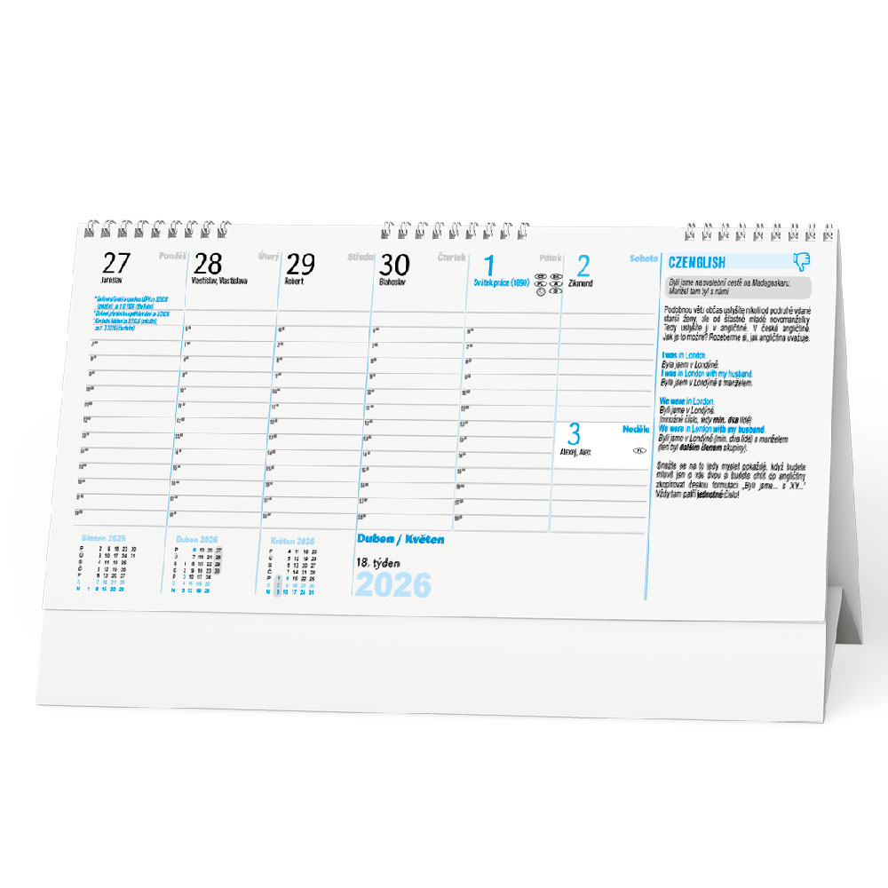 Stolový kalendár 2026 Plánovací daňový kalendár s angličtinou