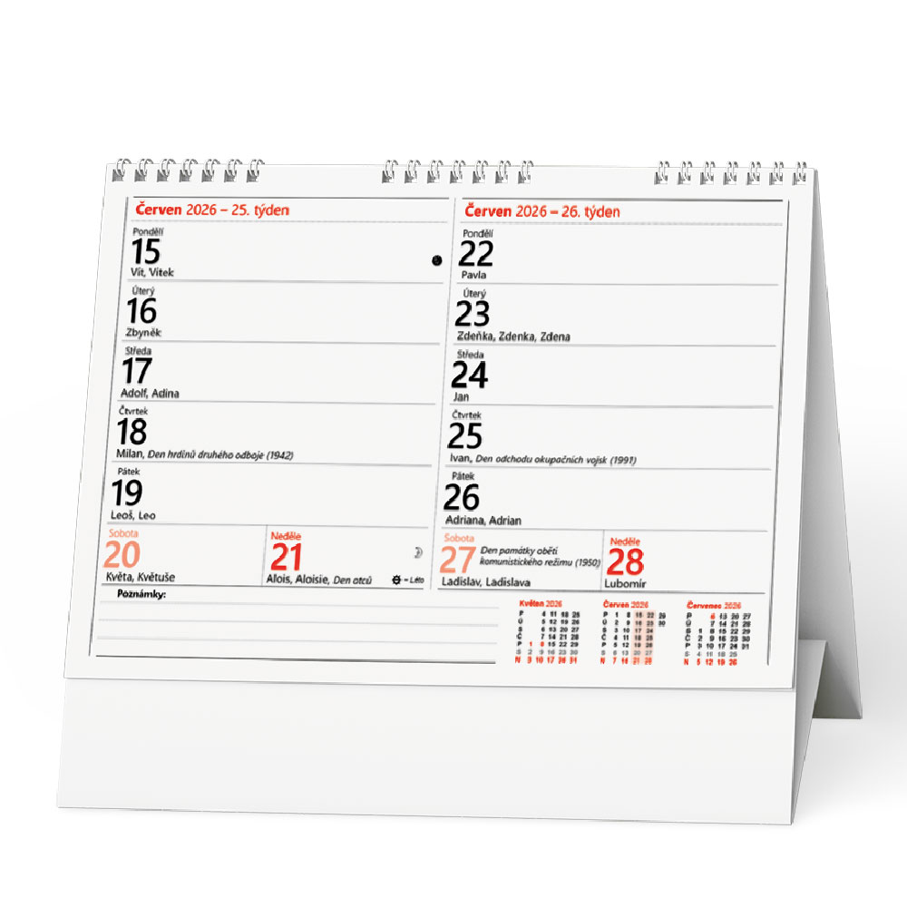 Stolový kalendár 2026 Pracovný kalendár Štrnásťdňový