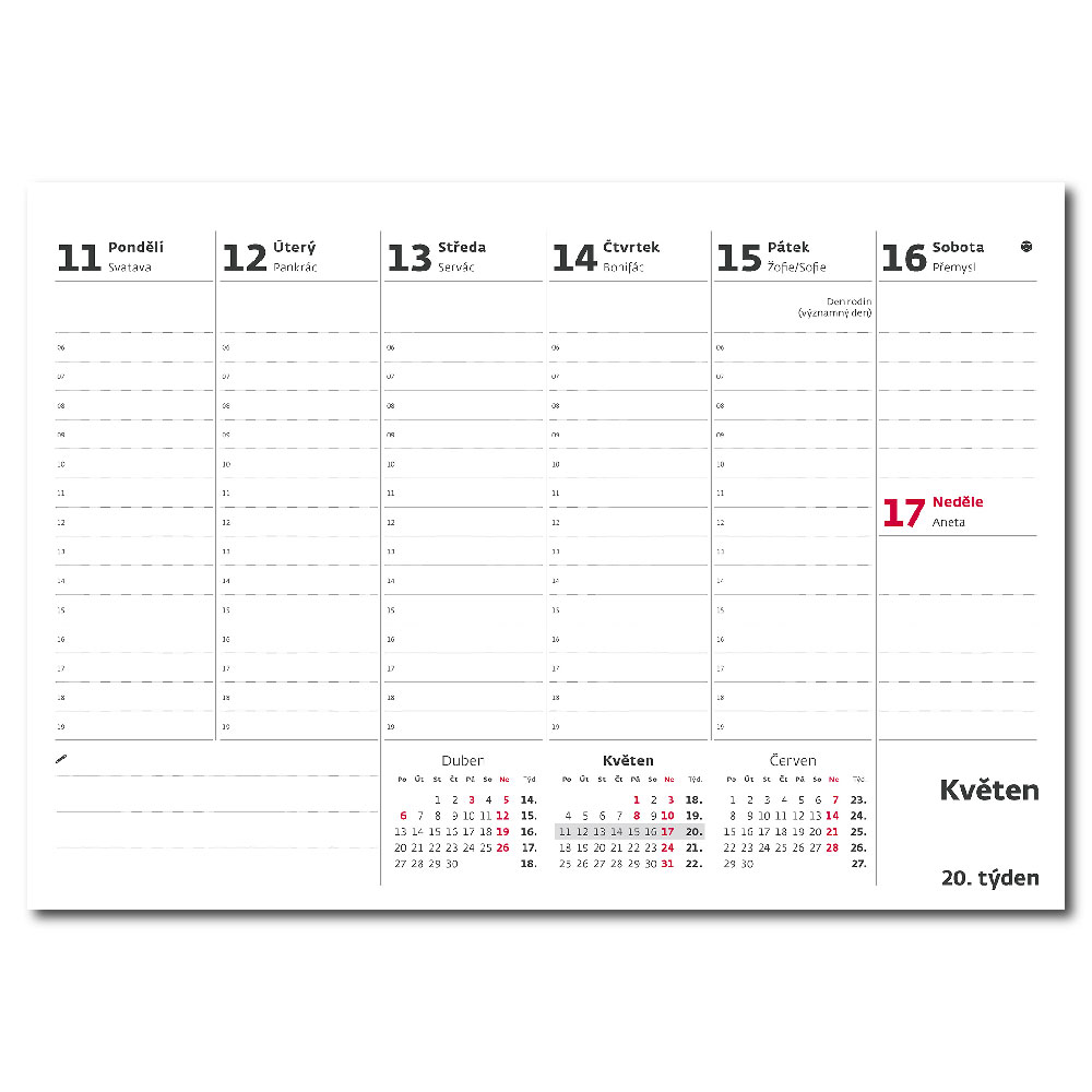 Kalendárium: České týždenné stĺpcové menné