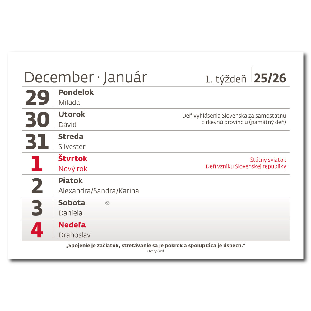 Stolový kalendár 2026 - Týždenný kalendár s citátmi