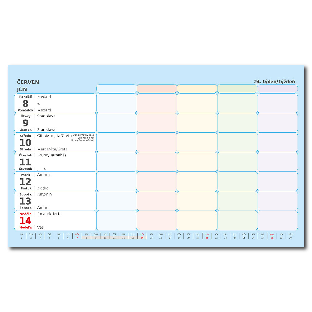 Kalendárium: České/slovenské týždenné riadkové menné