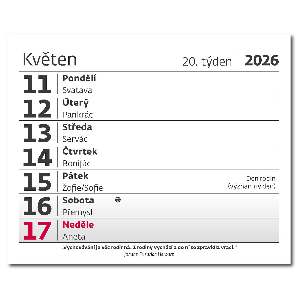 Kalendárium: české týždenné riadkové menné