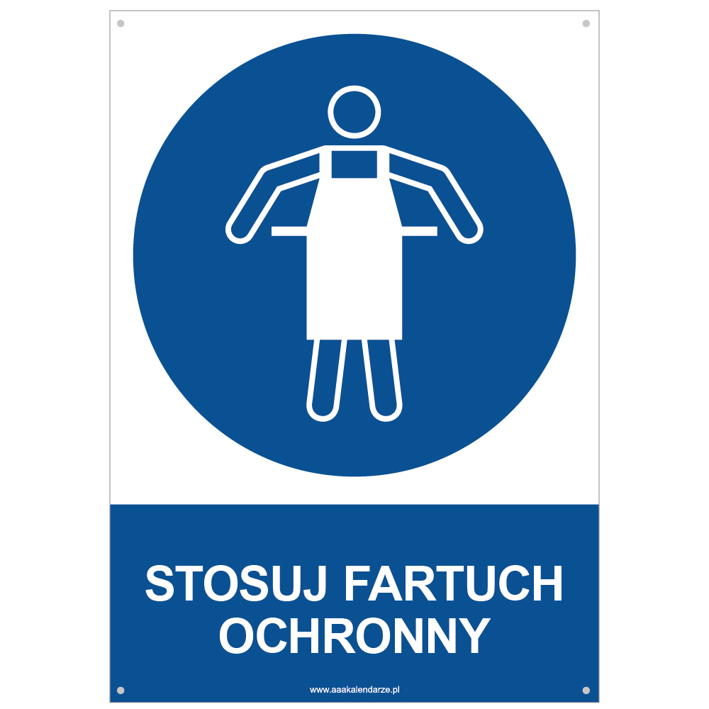 STOSUJ FARTUCH OCHRONNY - znak BHP z dziurkami, płyta PVC A4, 2 mm