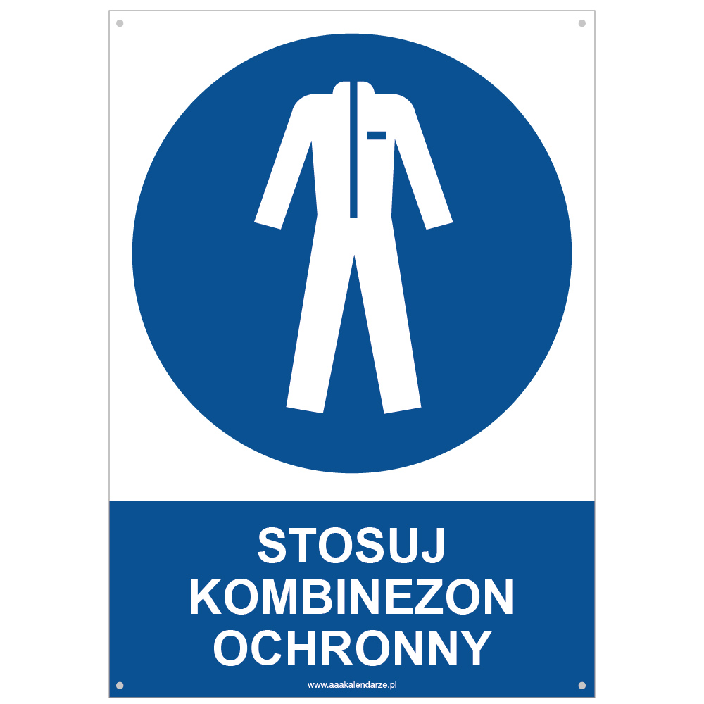 STOSUJ KOMBINEZON OCHRONNY - znak BHP z dziurkami, płyta PVC A4, 2 mm