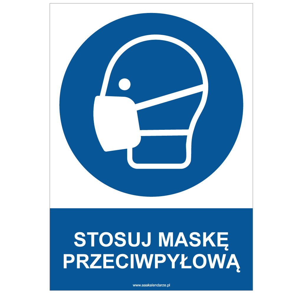 STOSUJ MASKĘ PRZECIWPYŁOWĄ - znak BHP, naklejka A4