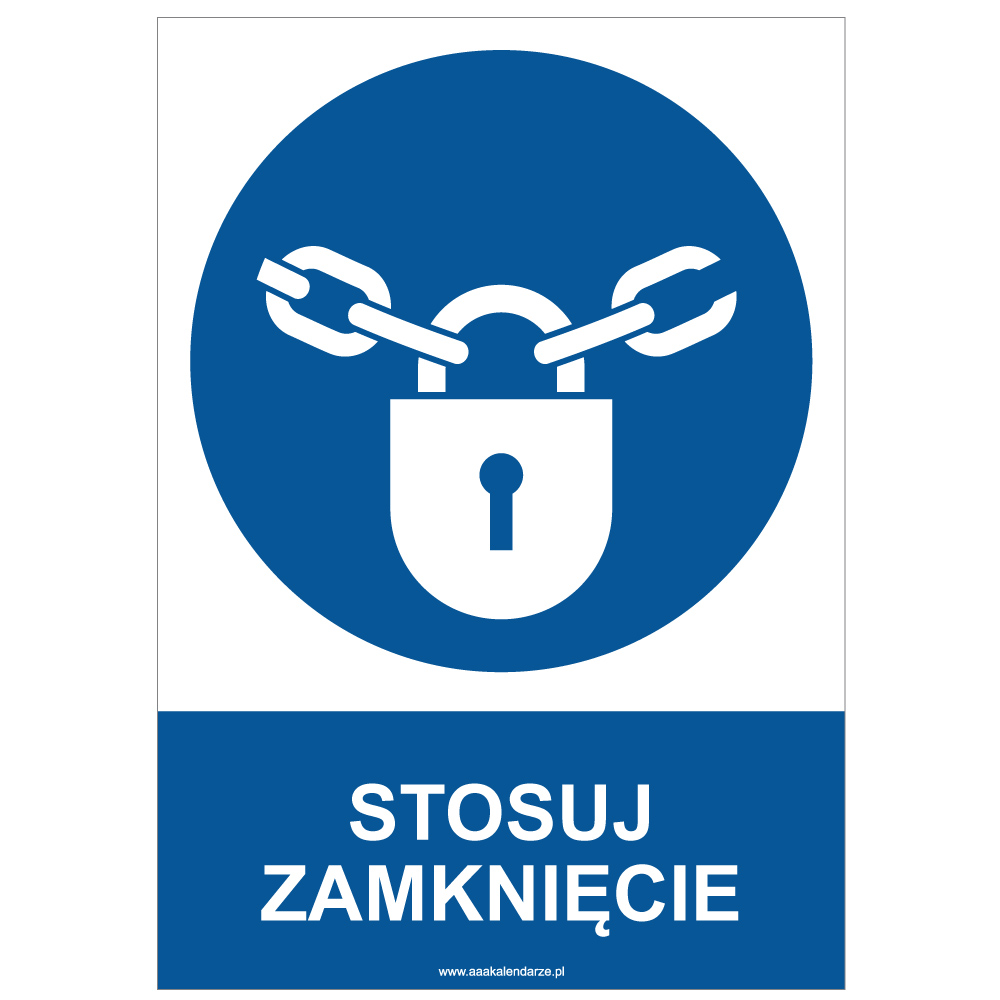 STOSUJ ZAMKNIĘCIE - znak BHP, płyta PVC A4, 0,5 mm