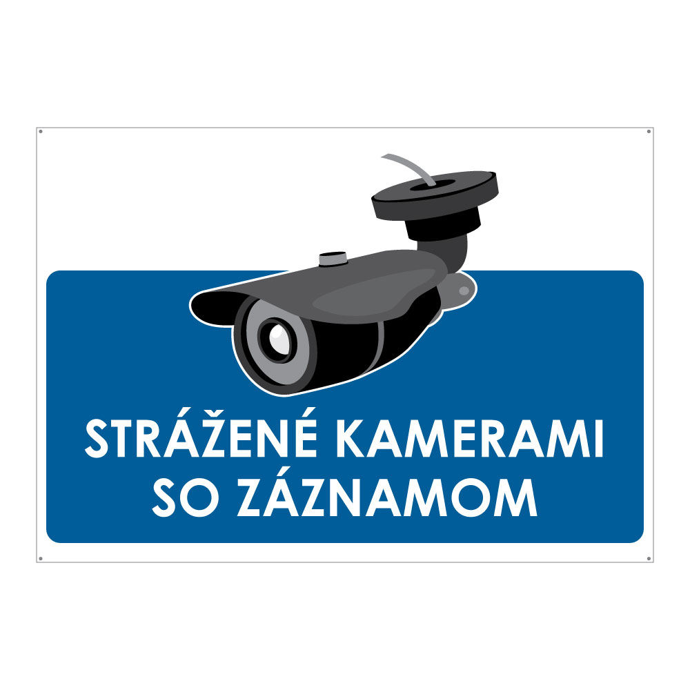 Strážené kamerami so záznamom-modrý symbol, plast 2mm s dierkami-210x148mm