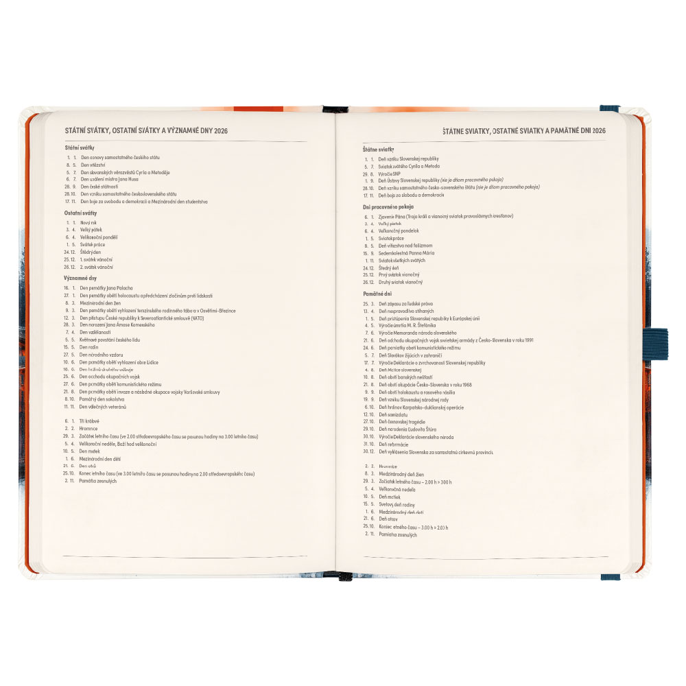 Súčasťou je záložka, pútko na ceruzku a vnútorné vrecko.