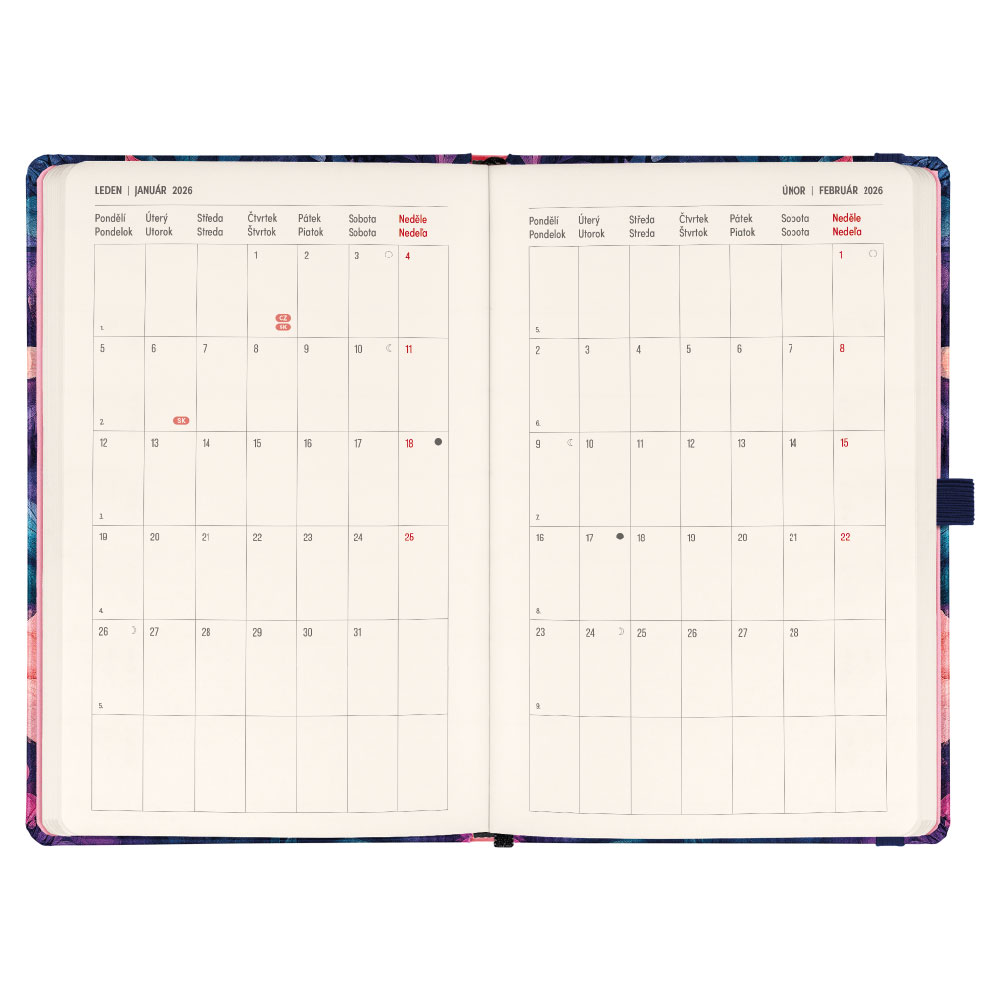Dokonalá kombinácia diára a notesu - štrnásťdňová horizontálna