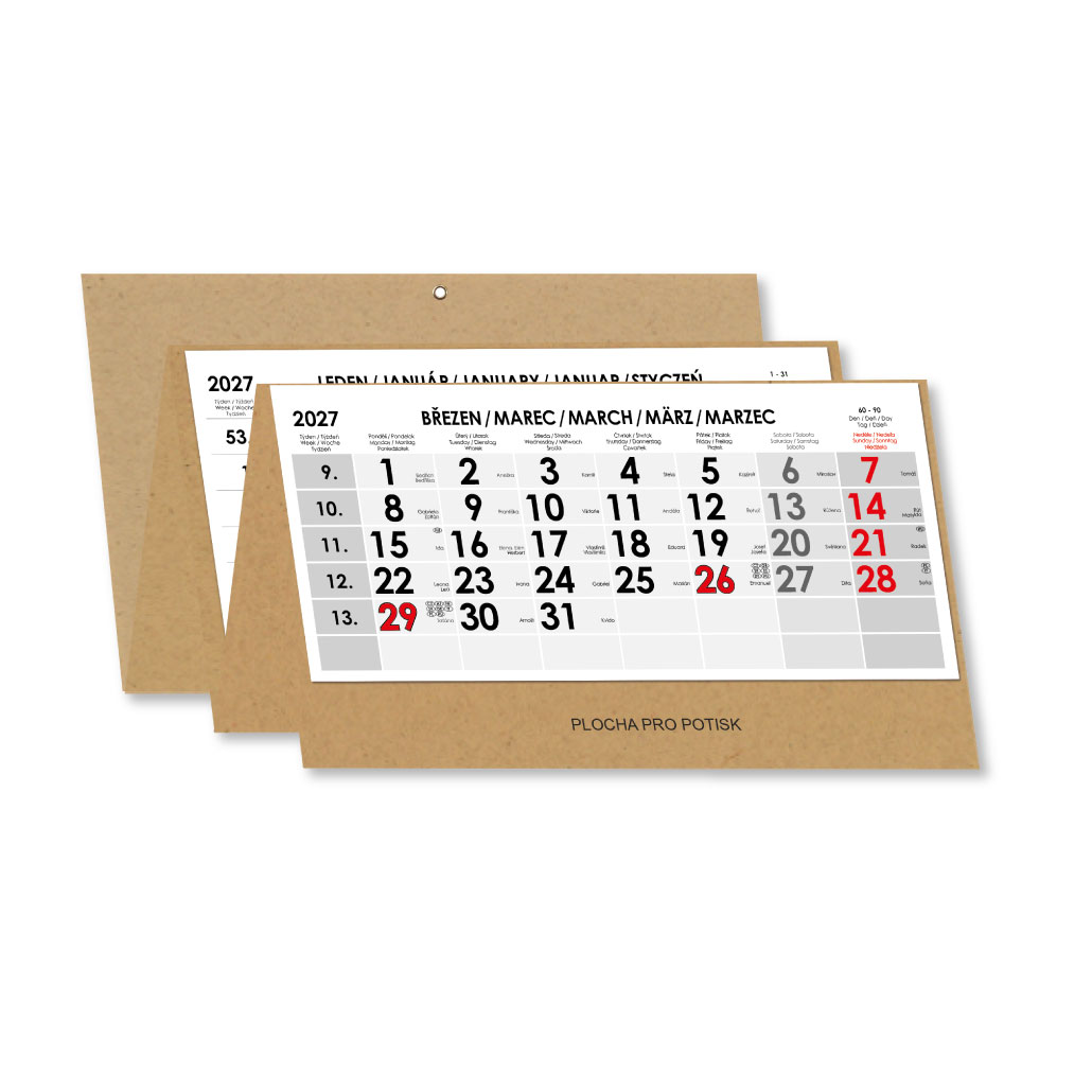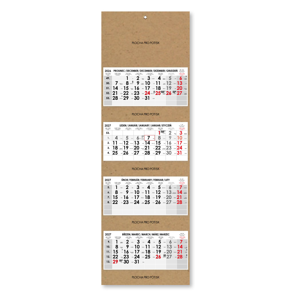 Štvormesačný kalendár Kvatro Kraft skládaný český 2027 - sivý