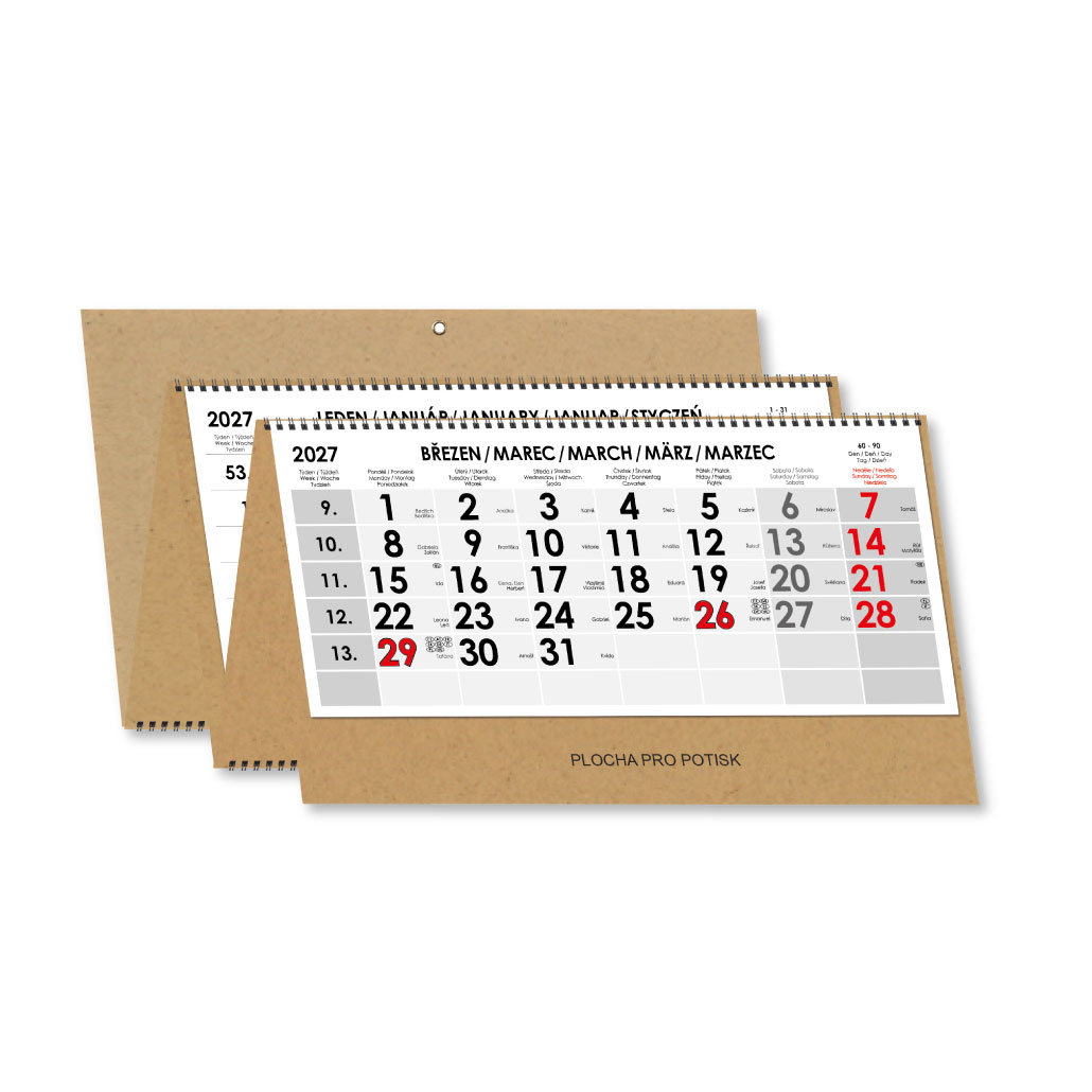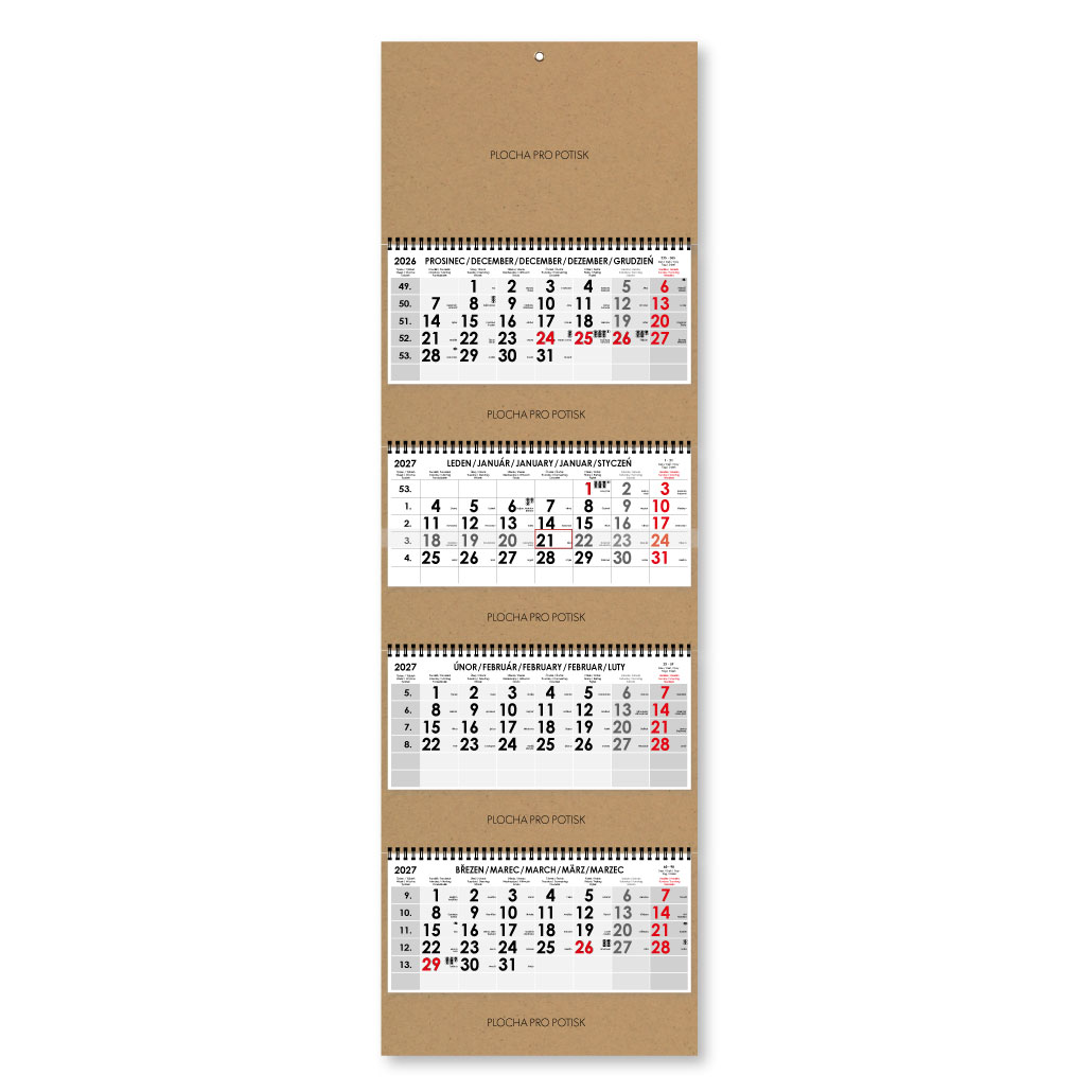 Štvormesačný kalendár Kvatro Kraft skládaný český so špirálou 2027 - sivý