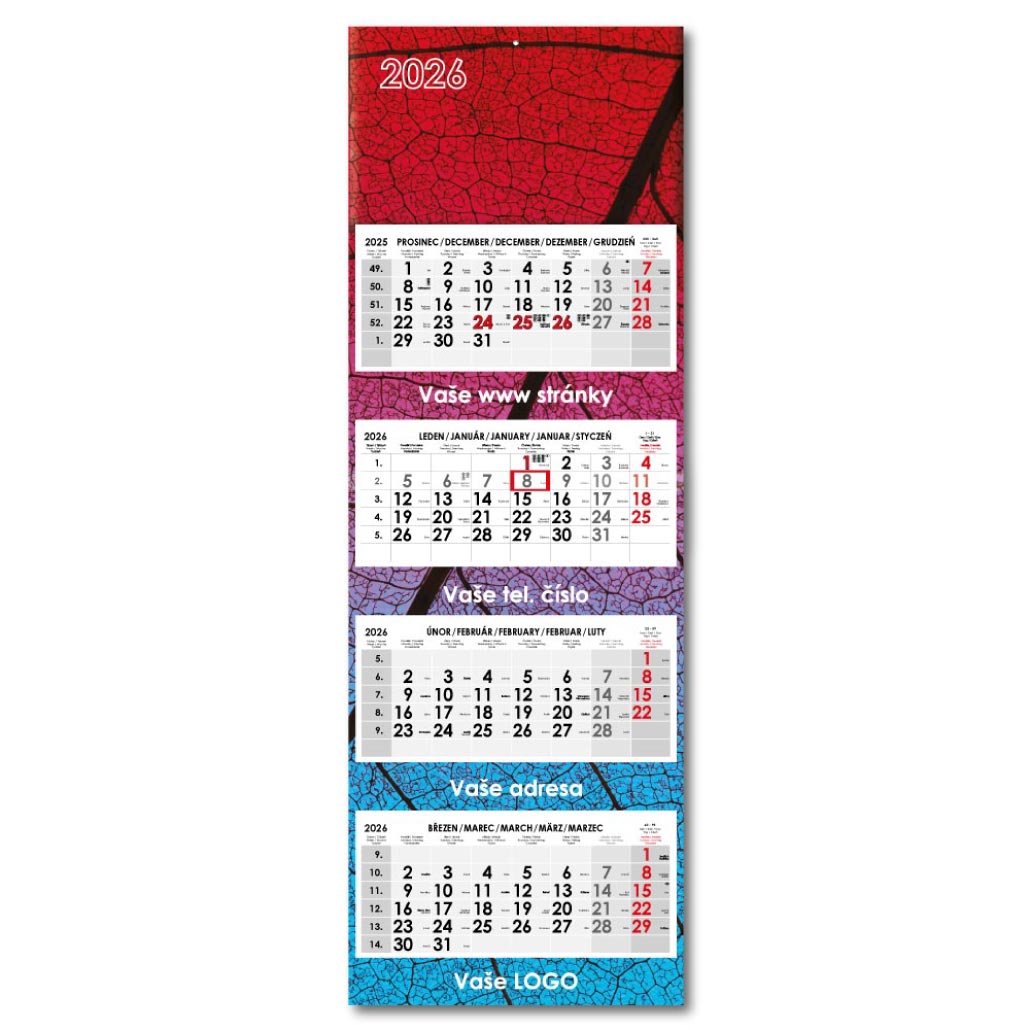 Formát kalendária: 295 x 135 mm