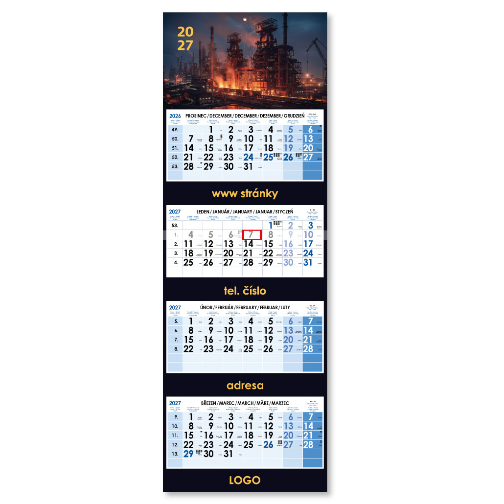 Formát kalendária: 295 x 135 mm
