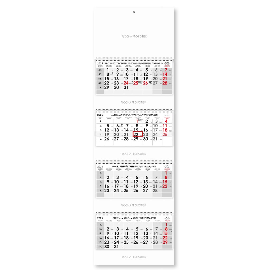Štvormesačný kalendár Kvatro skládaný český so špirálou 2026 - sivý