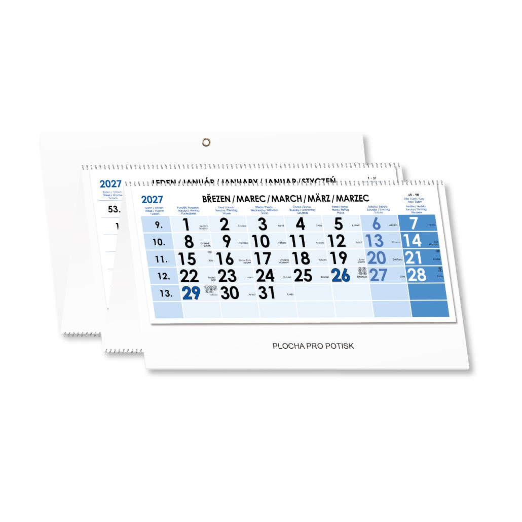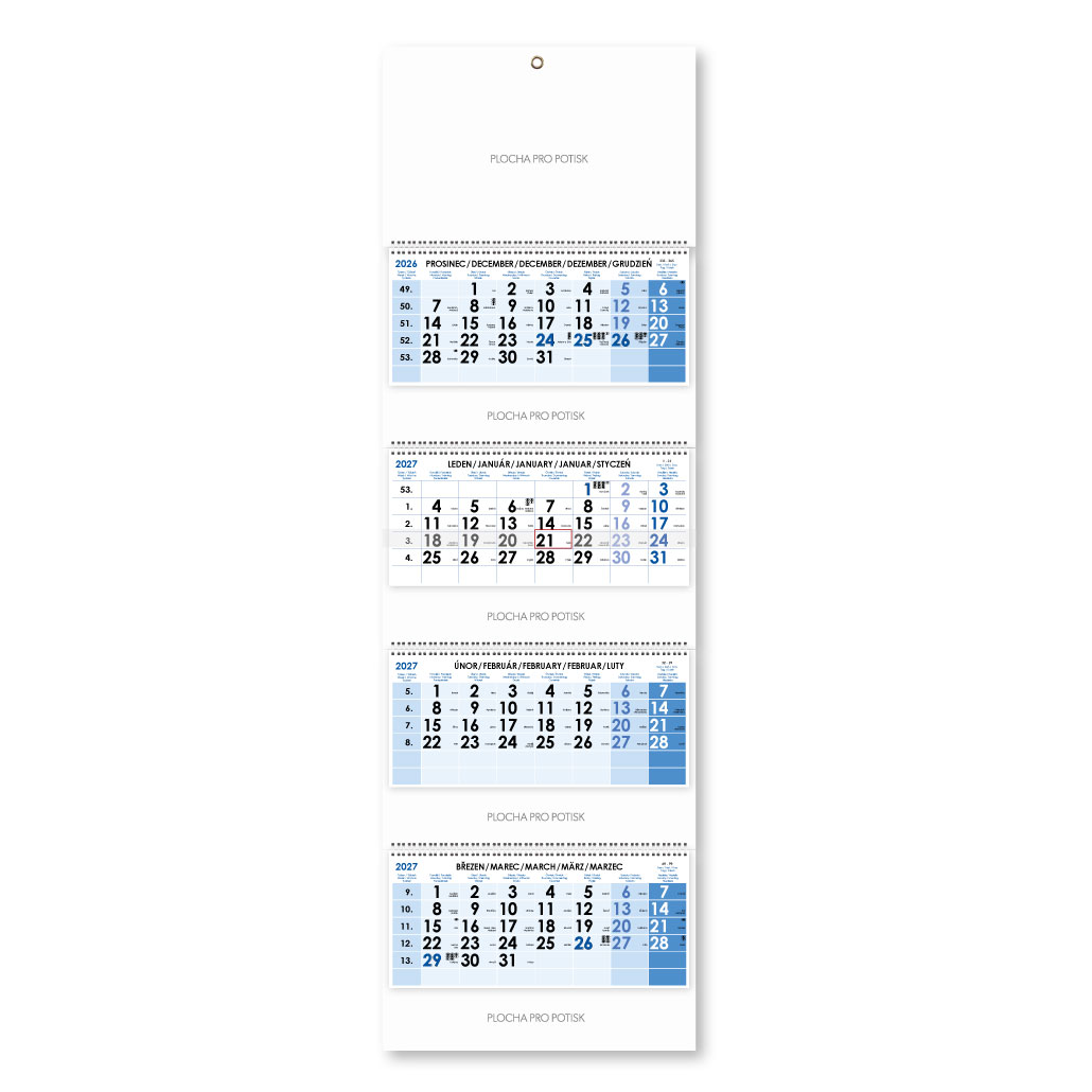 Štvormesačný kalendár Kvatro skládaný český so špirálou 2027 - modrý