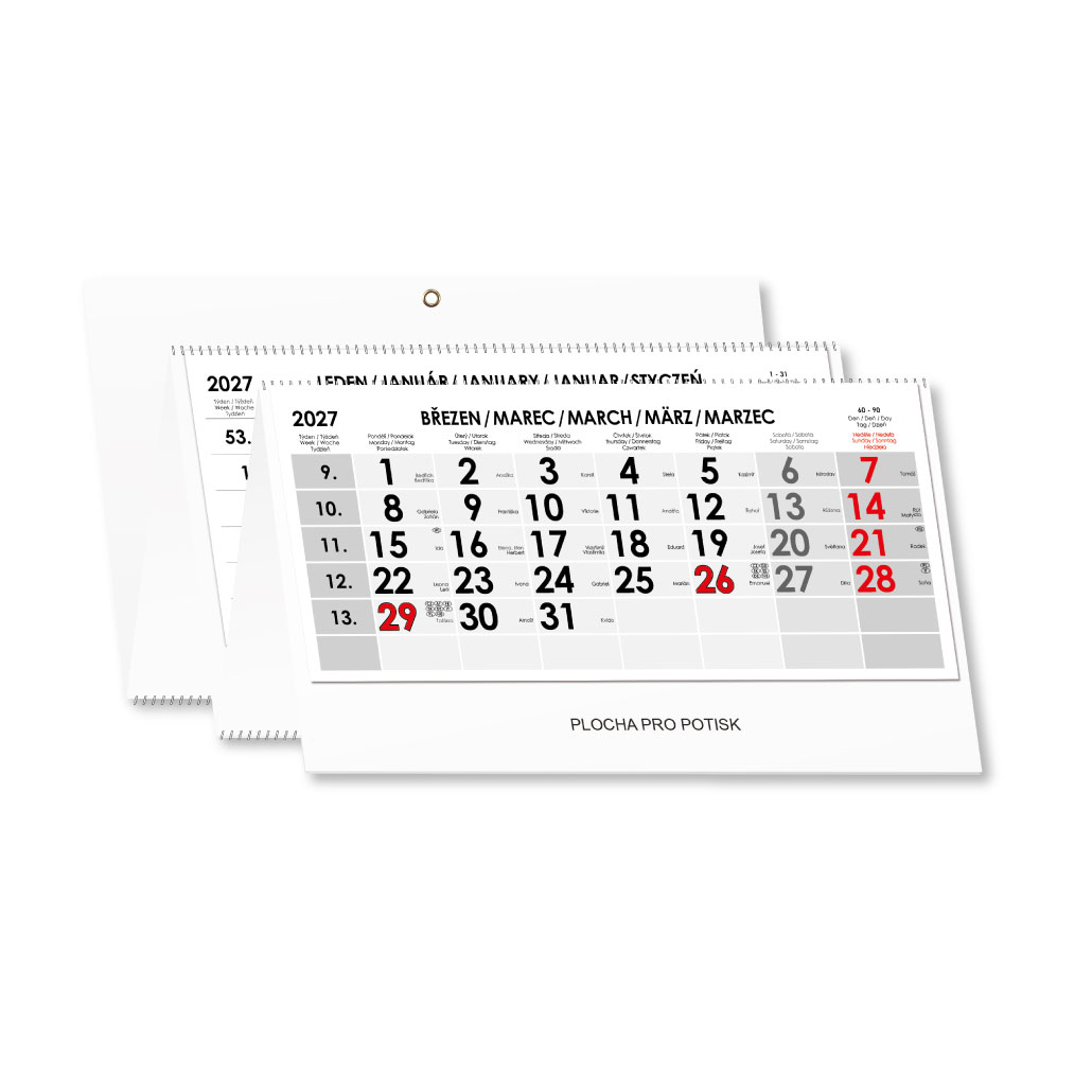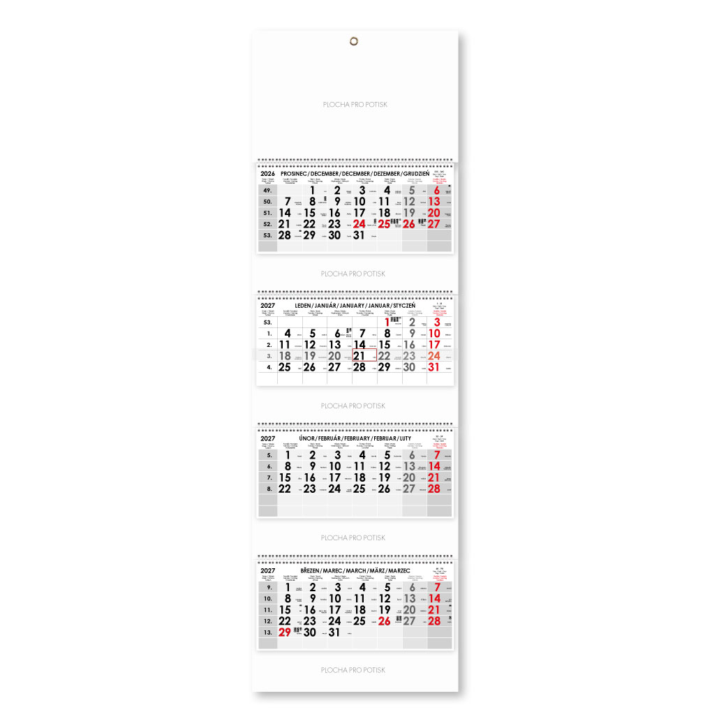 Štvormesačný kalendár Kvatro skládaný český so špirálou 2027 - sivý