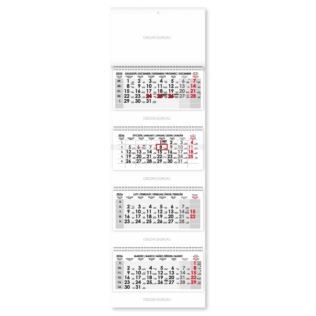 Kalendárium: štvormesačné polské menné s jazykovou mutáciou PL, ANG, D, CZ