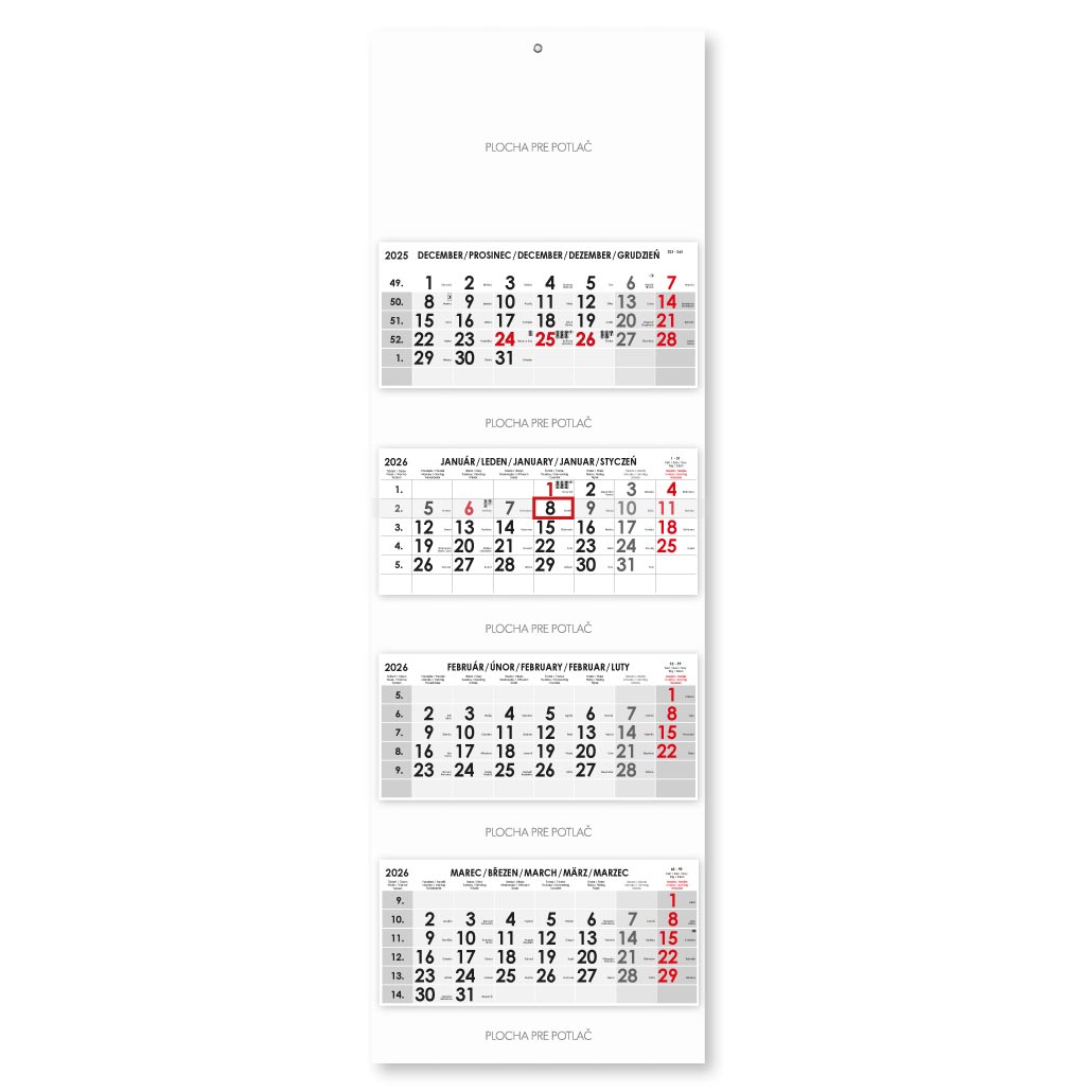 Formát kalendária: 295 x 135 mm
