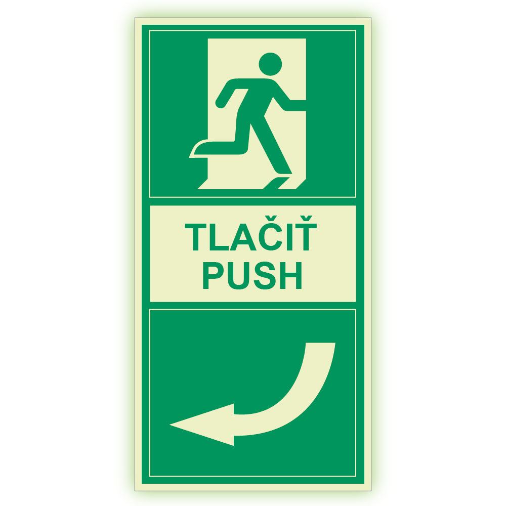 Tabuľka pod kľučku dverí - Tlačiť - Vľavo - fotoluminiscenční tabuľka, samolepka 100x200 mm