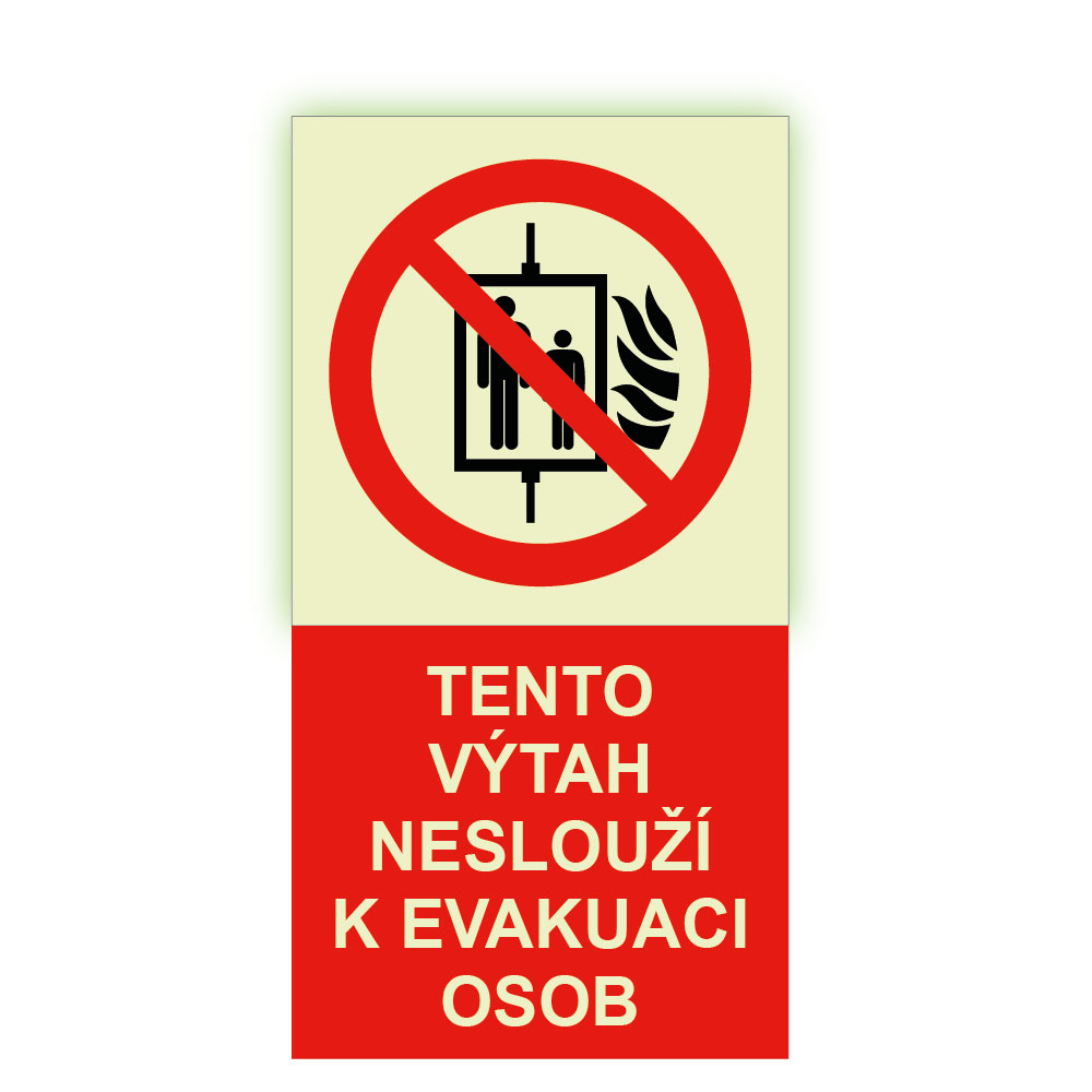 Tento výtah neslouží k evakuaci osob - fotoluminiscenční tabulka, samolepka 80x150 mm
