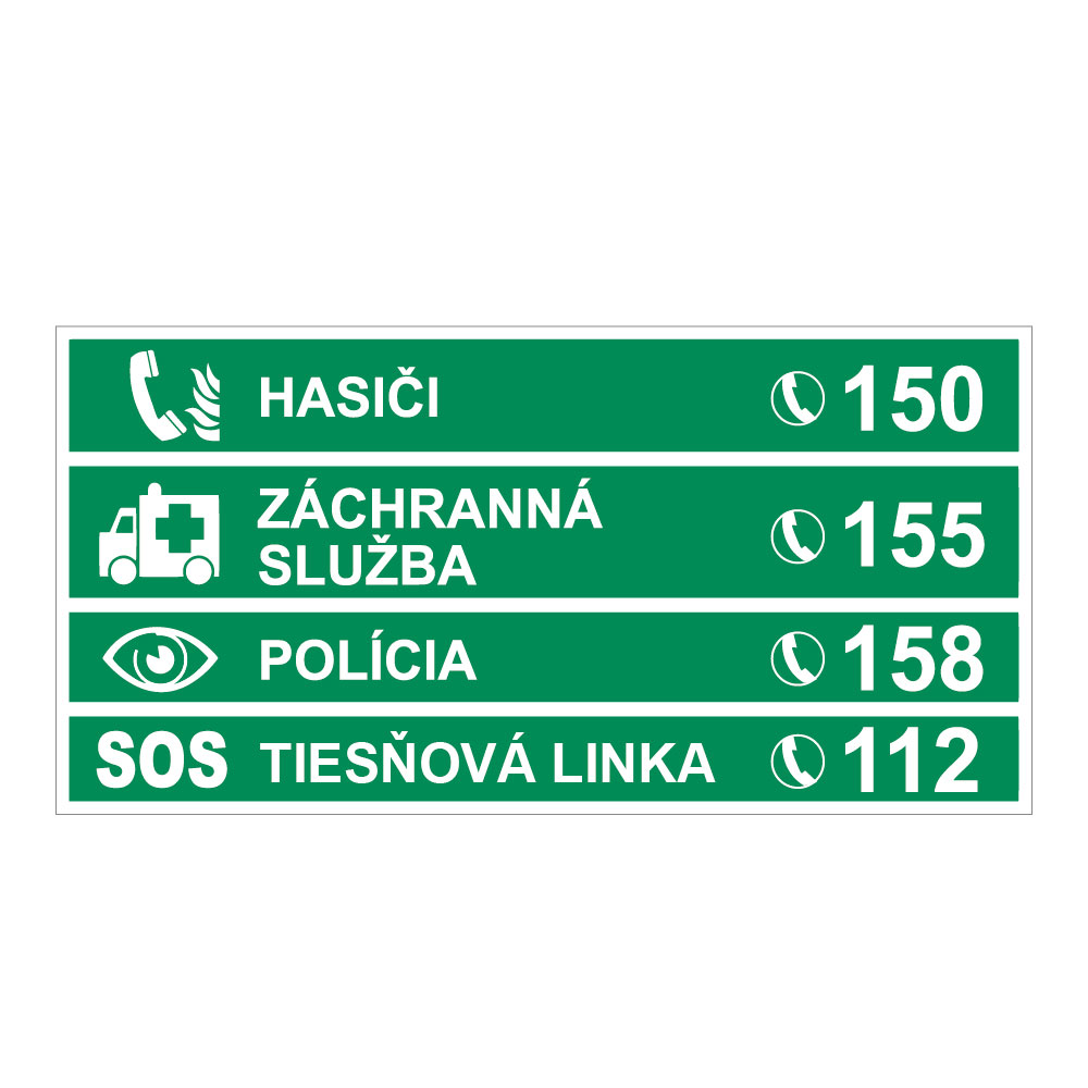 Tiesňové telefónne čísla - bezpečnostná tabuľka, plast 1 mm 300x150 mm