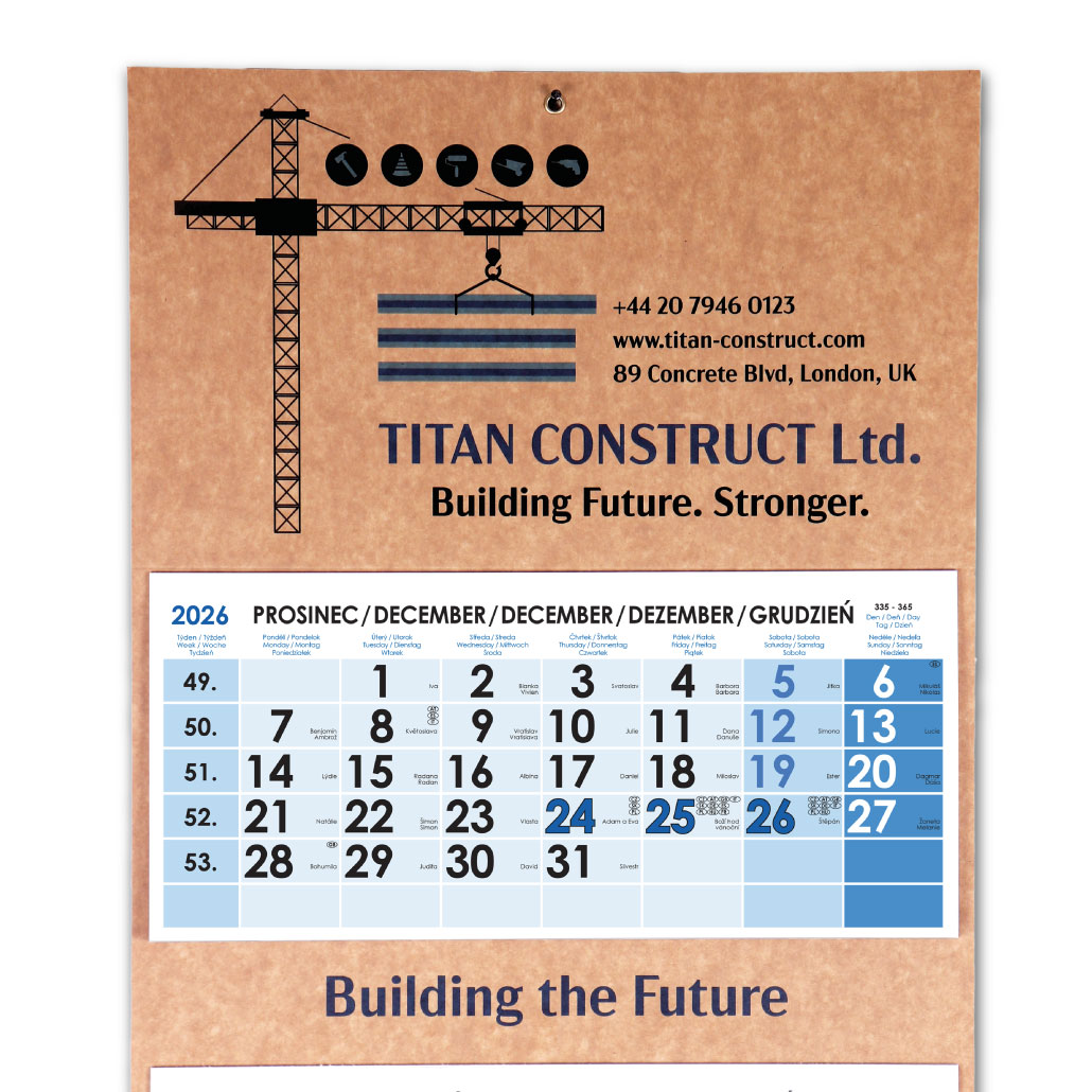 Kalendárium: trojmesačné české menné s jazykovou mutáciou SK, ANG, D, PL