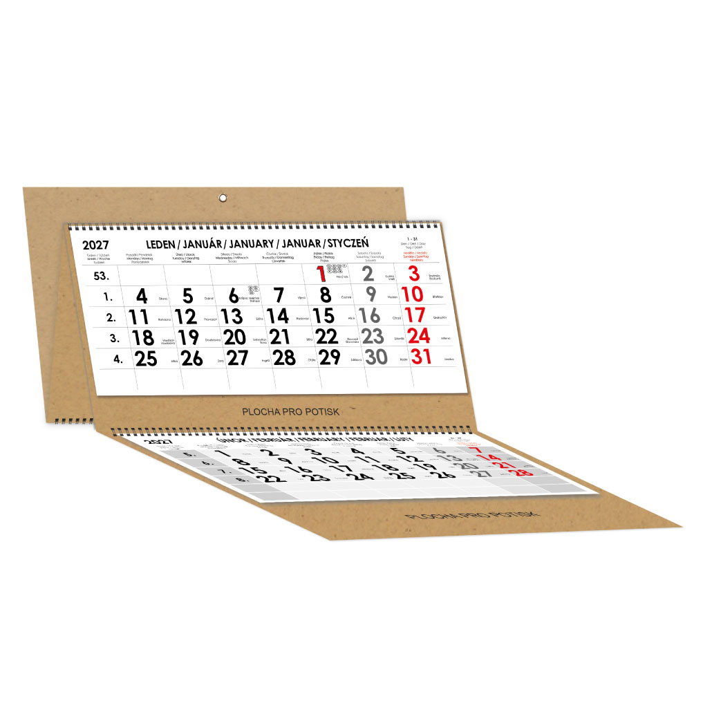 Trojmesačný kalendár Trio Kraft skládaný český so špirálou 2027 - sivý