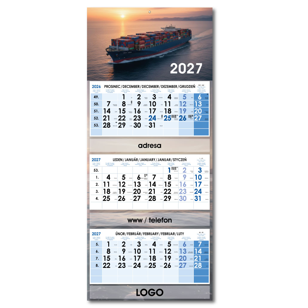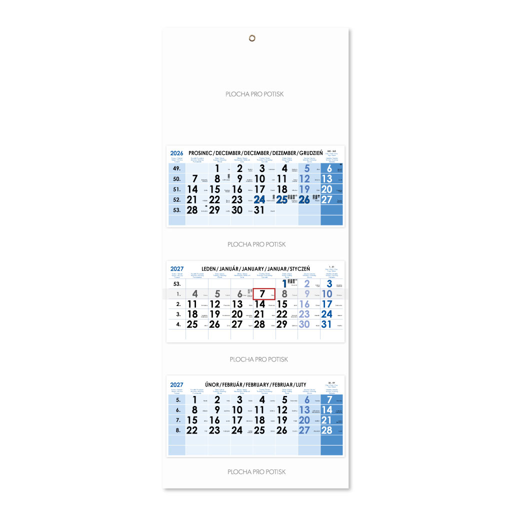 Trojmesačný kalendár Trio skládaný český 2027 - modrý