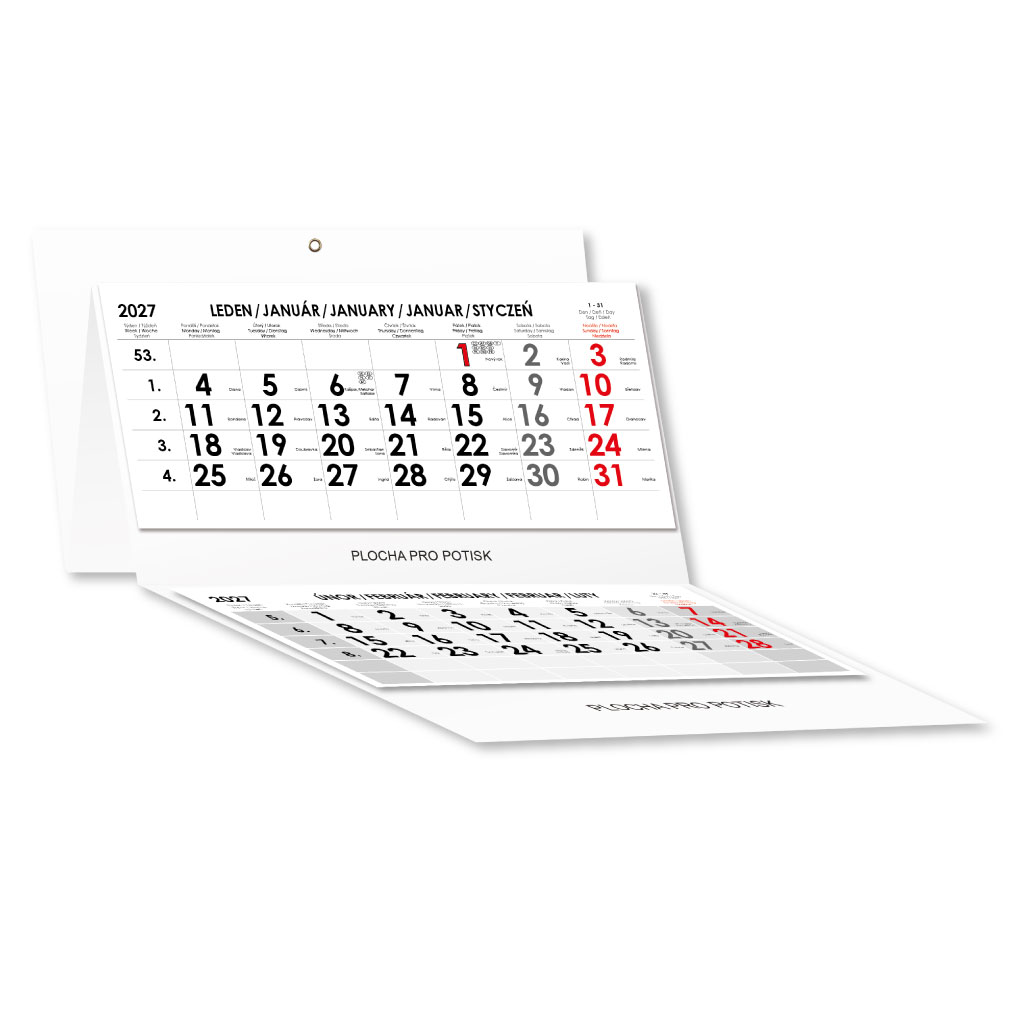 Kalendárium: trojmesačné české menné s jazykovou mutáciou SK, ANG, D, PL