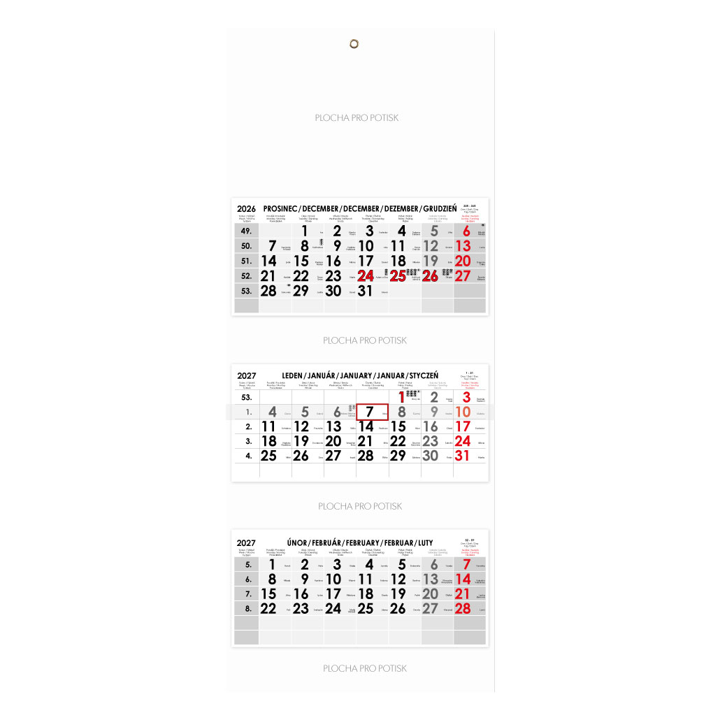 Formát kalendária: 295 x 135 mm