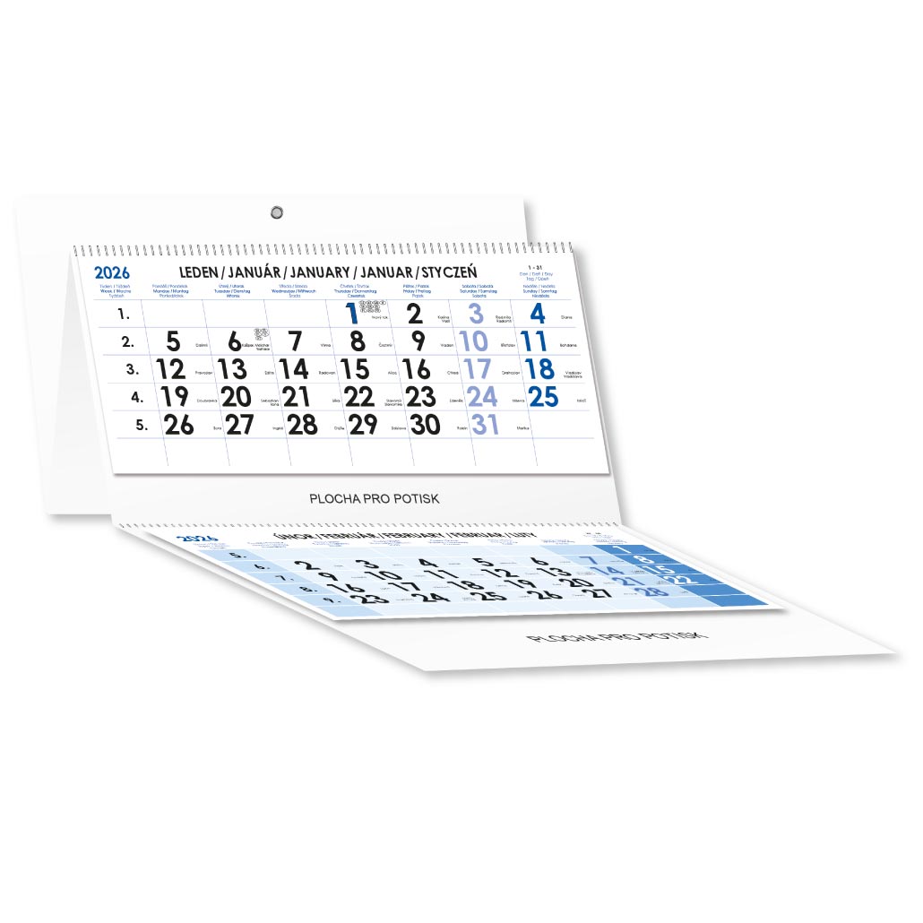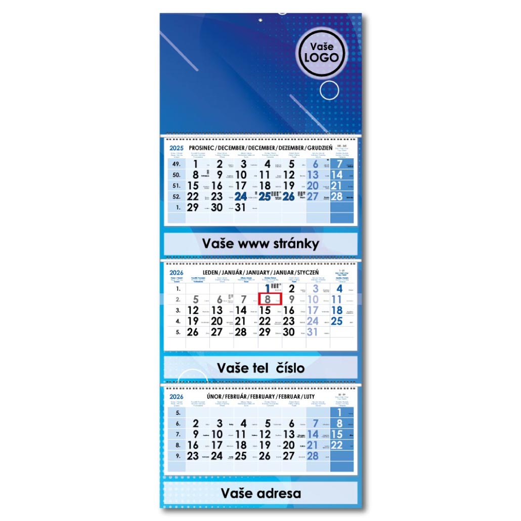 Trojmesačný kalendár Trio skládaný český so špirálou 2026 - modrý