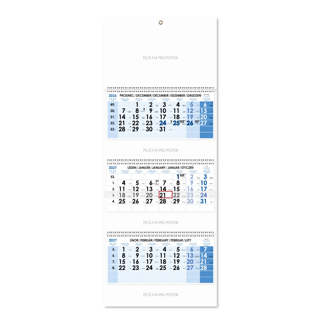 Formát kalendária: 295 x 135 mm
