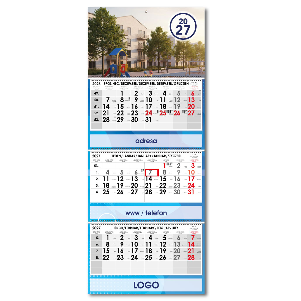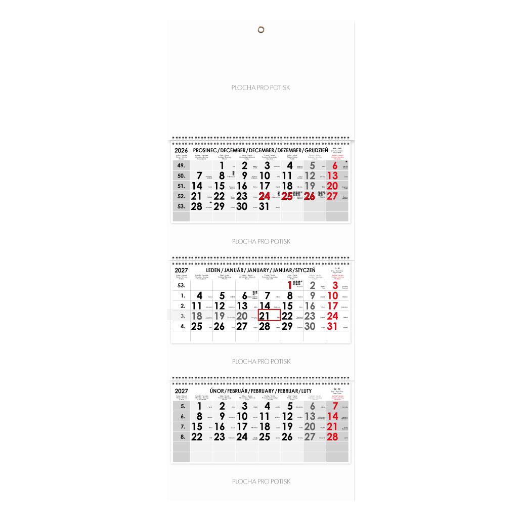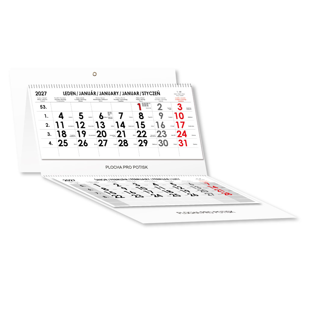 Trojmesačný kalendár Trio skládaný český so špirálou 2027 - sivý