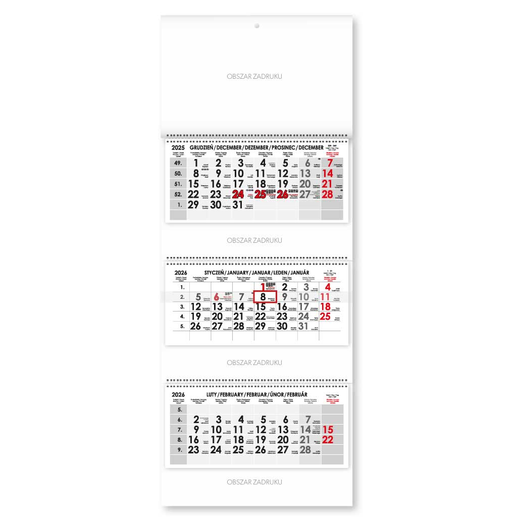 Trojmesačný kalendár Trio skládaný polský so špirálou 2026 - sivý