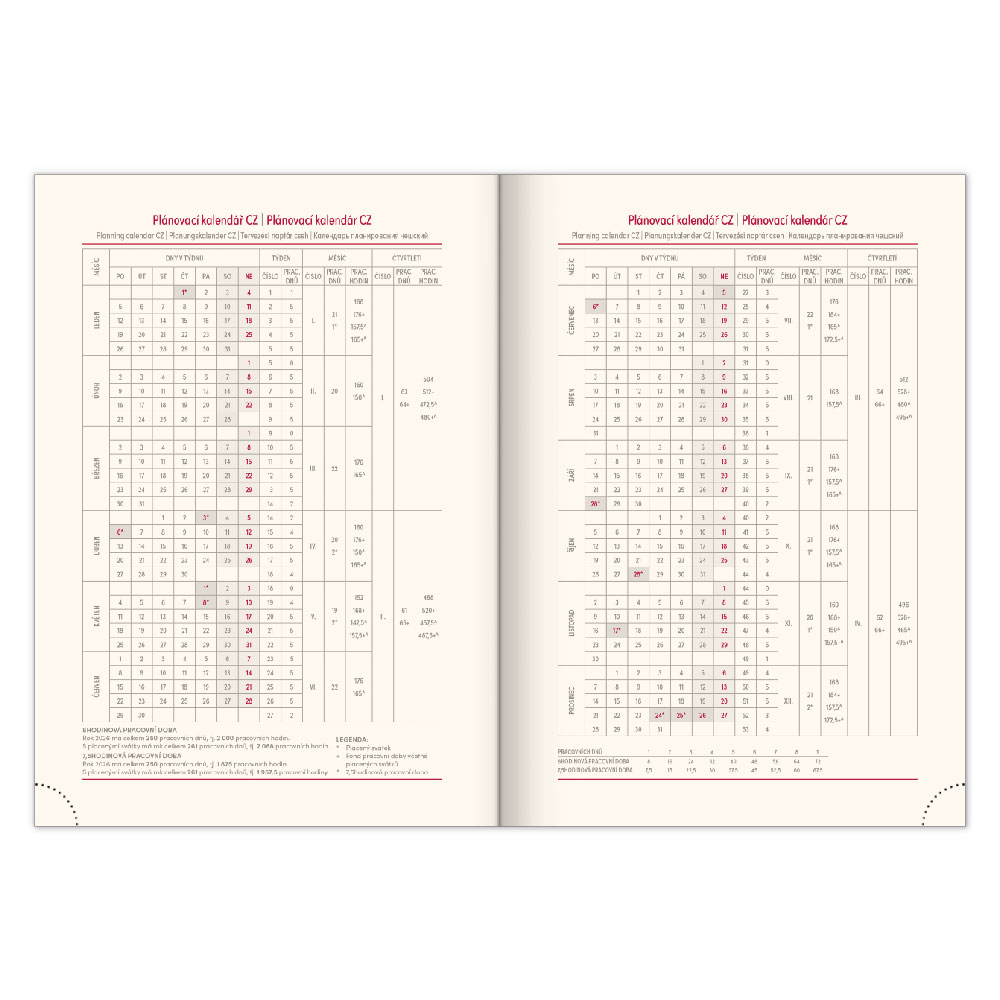 Kalendárium: 6-jazyčné týždenné (CZ, SK, EN, DE, HU, RU)