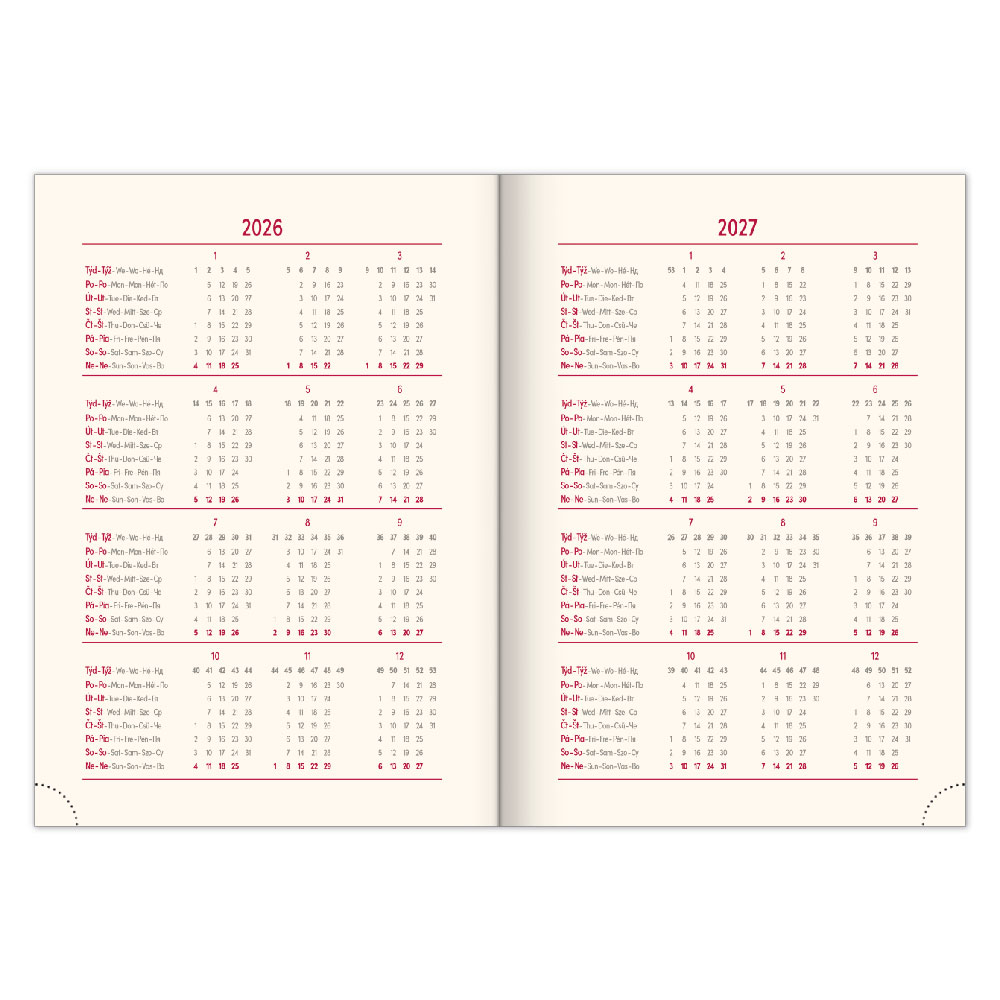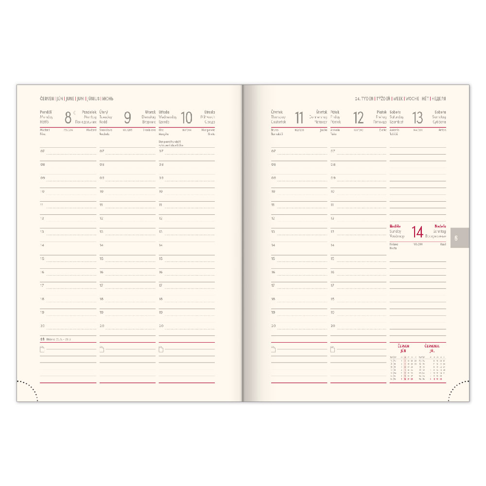 Kalendárium: 6-jazyčné týždenné (CZ, SK, EN, DE, HU, RU)