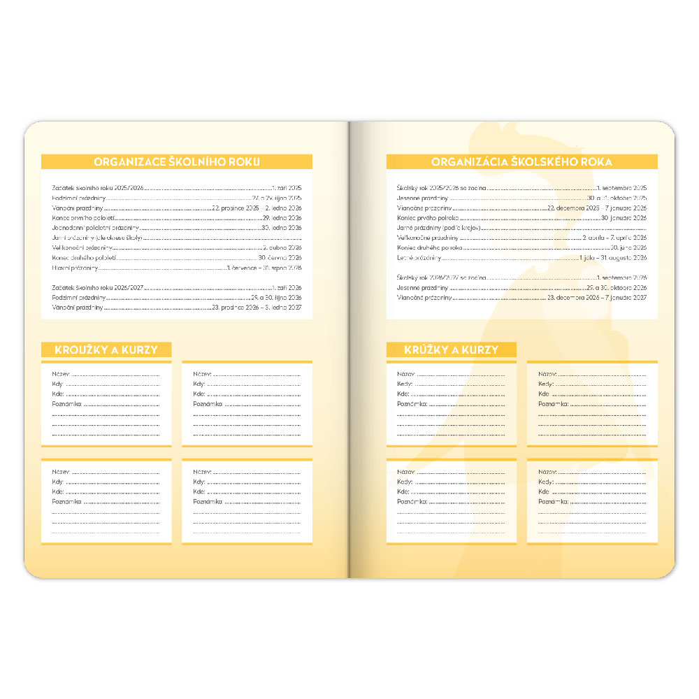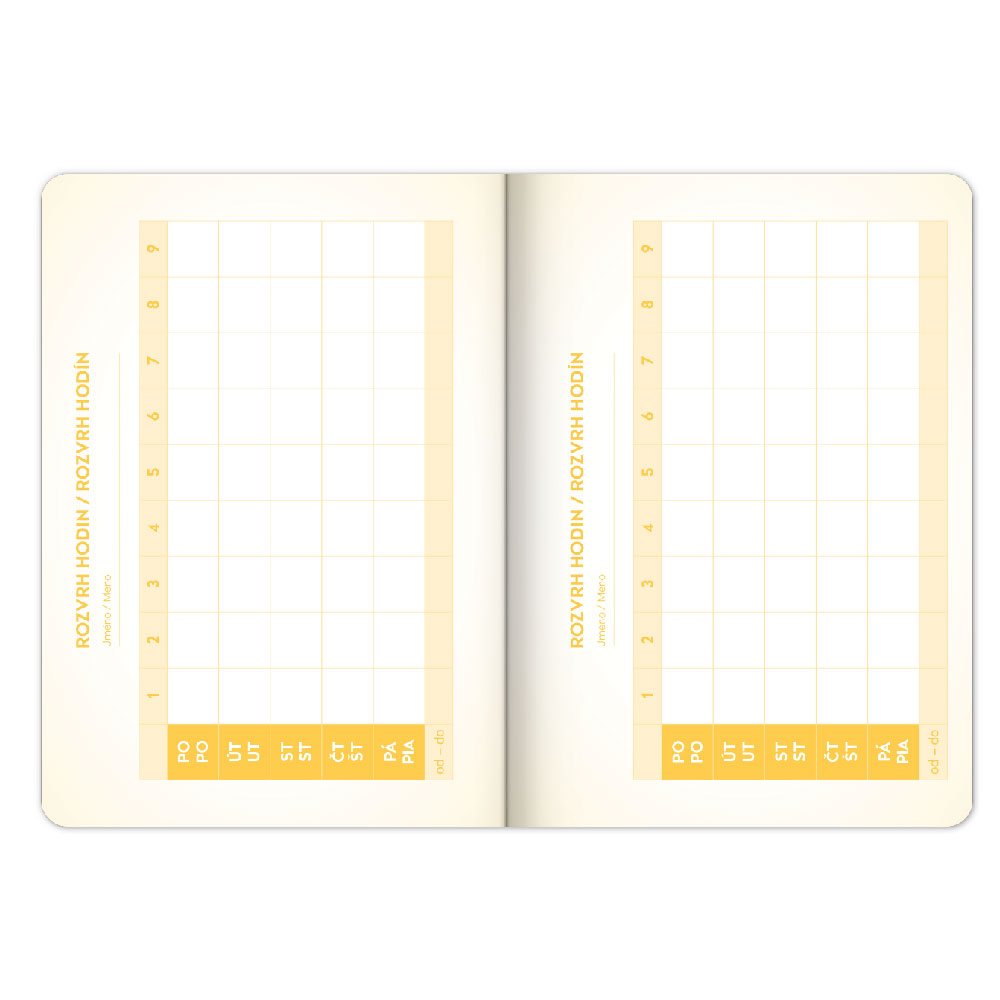 jednotlivých rodinných príslušníkov. Nechýba ani rozvrh hodín pre školákov,