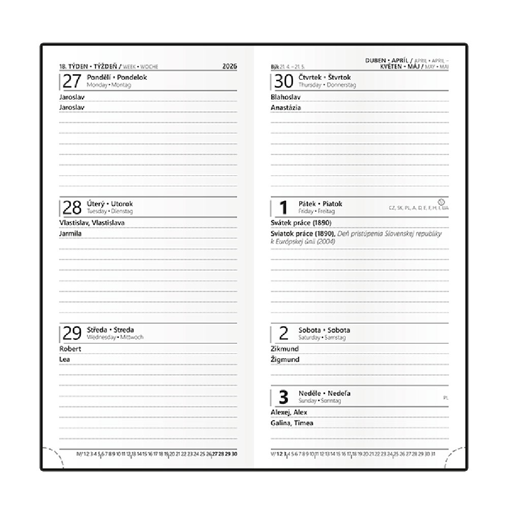 ročný plánovací kalendár CZ, miesto na poznámky.