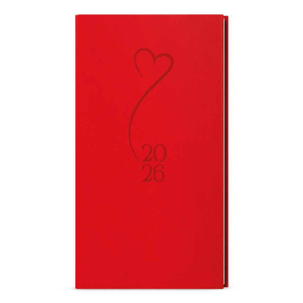 Týždenný diár 2026 Jakub Vivella s razbou vreckový - červená - Srdce