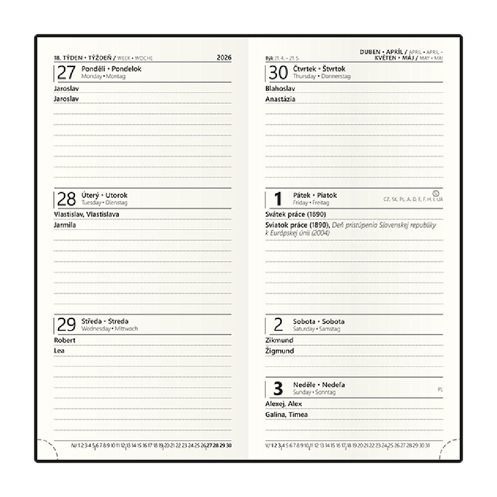 ročný plánovací kalendár CZ, miesto na poznámky.