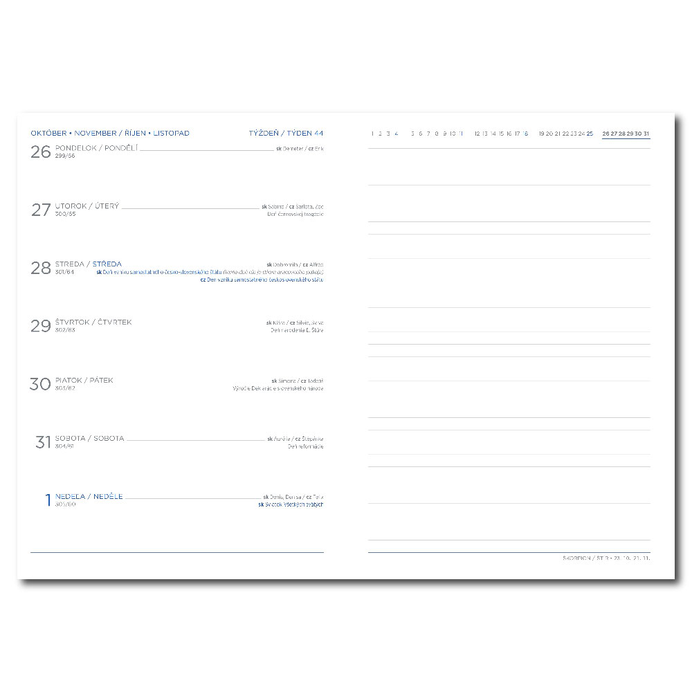 Kalendárium: slovenské týždenné + jedna voľná strana na poznámky