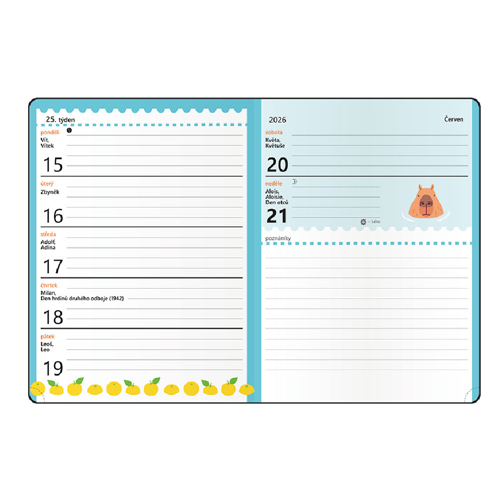Týždenný diár 2026 Študent Lamino vreckový - Kapybara
