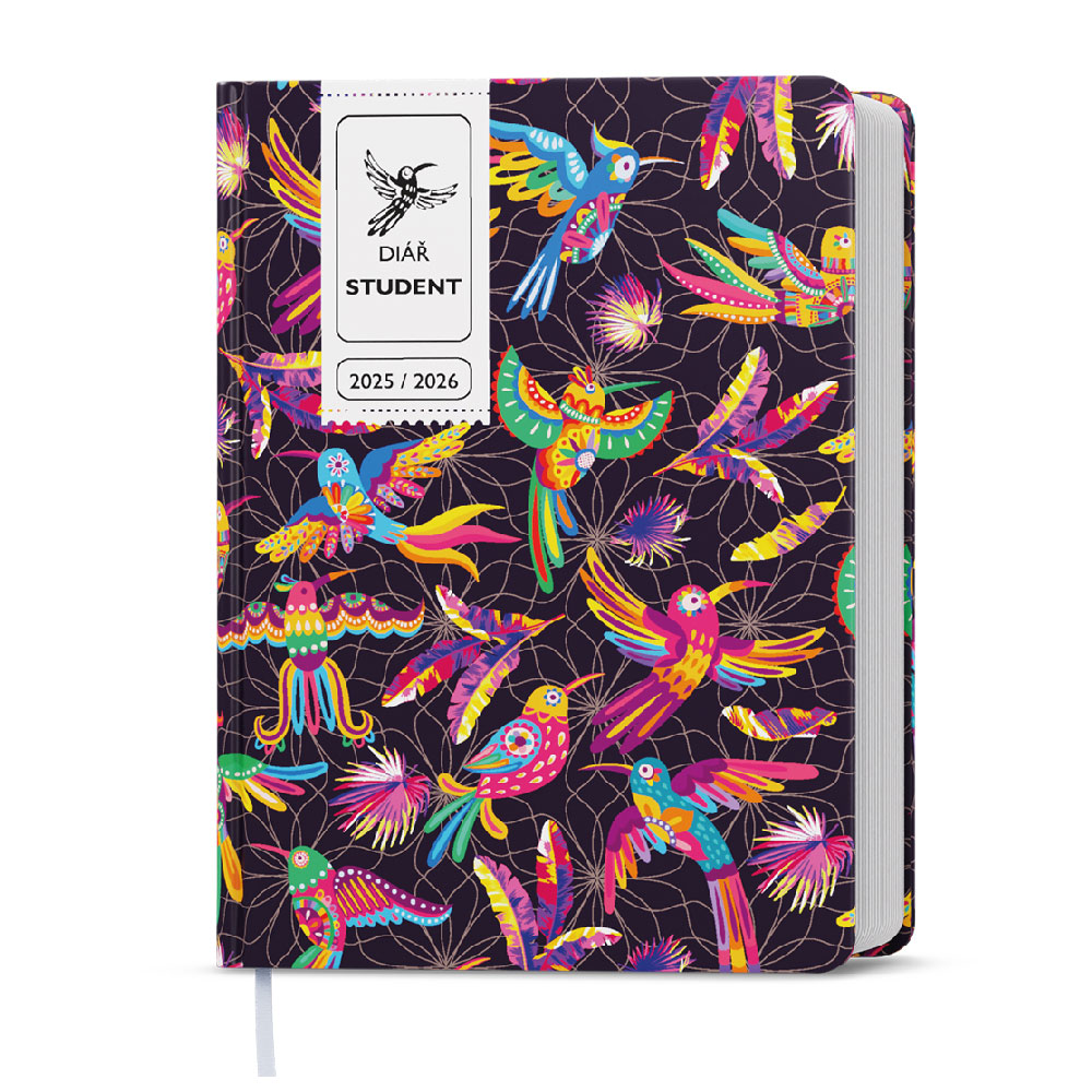 Farebný trendy motív a praktický formát do vrecka robí z diára cool doplnok.