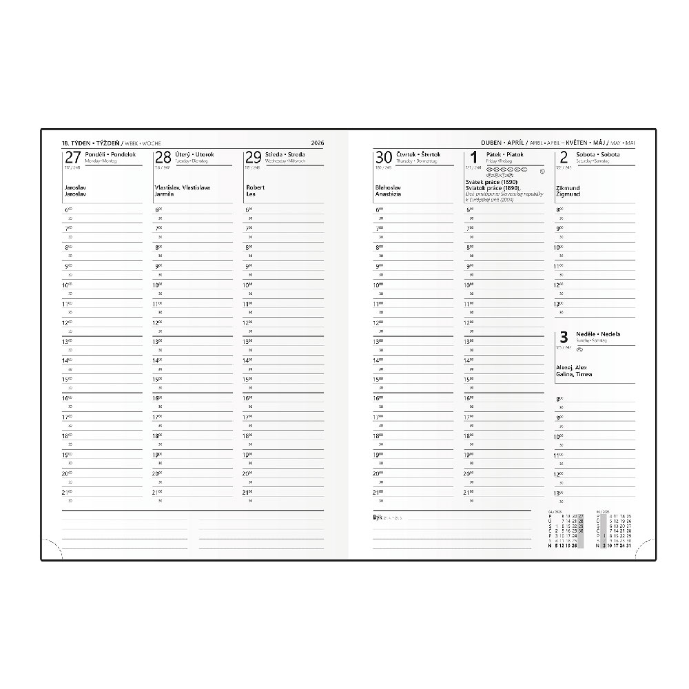 ročný plánovací kalendár CZ/SK, miesto na poznámky