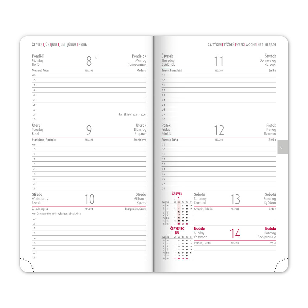 Kalendárium: 6-jazyčné týždenné (CZ, SK, EN, DE, HU, RU)