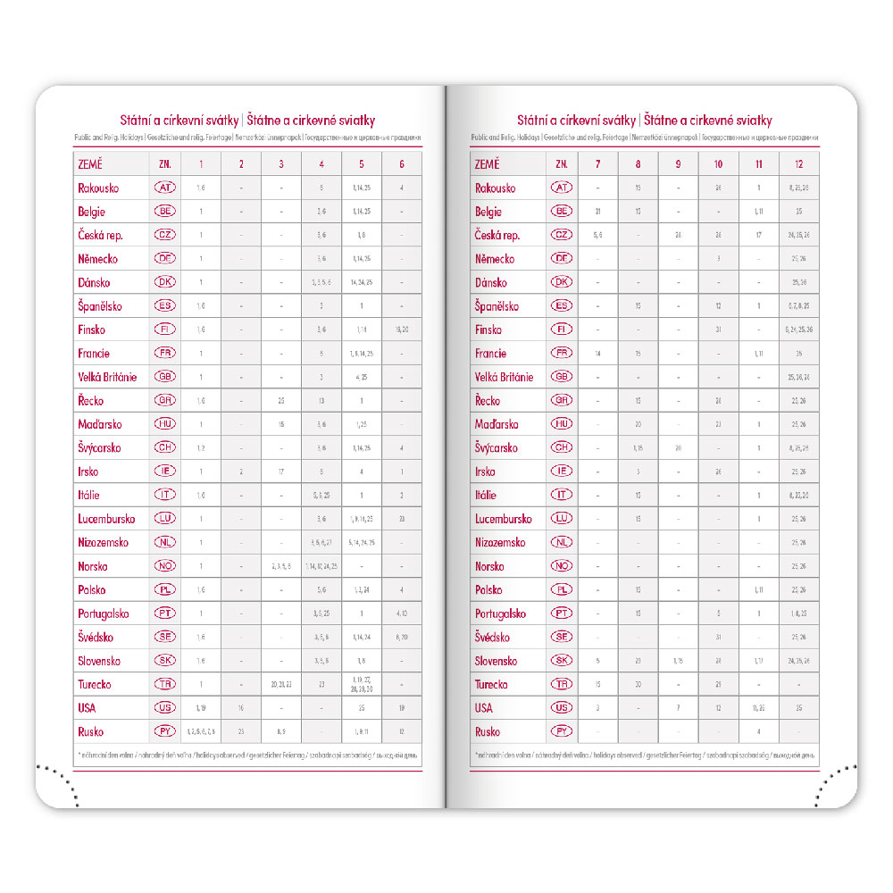 Kalendárium: 6-jazyčné týždenné (CZ, SK, EN, DE, HU, RU)