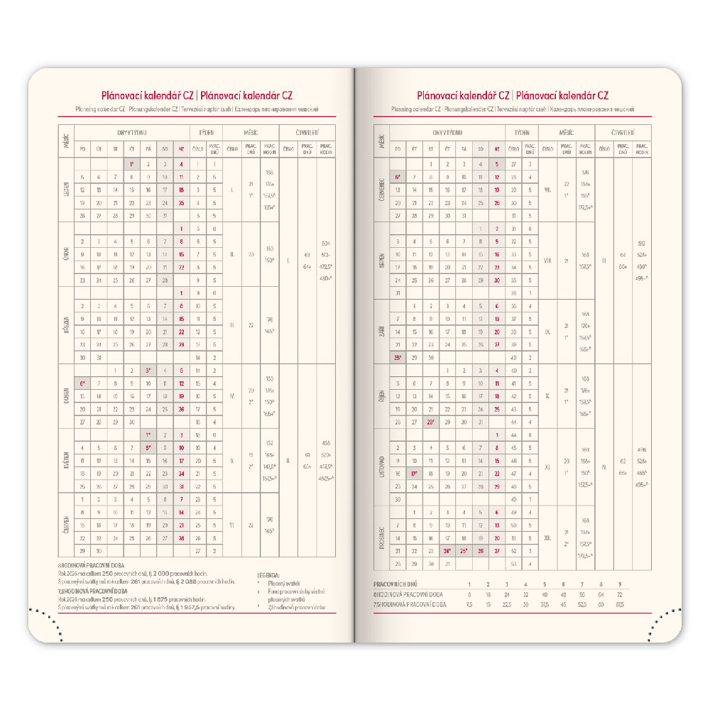 Kalendárium: 6-jazyčné týždenné (CZ, SK, EN, DE, HU, RU)