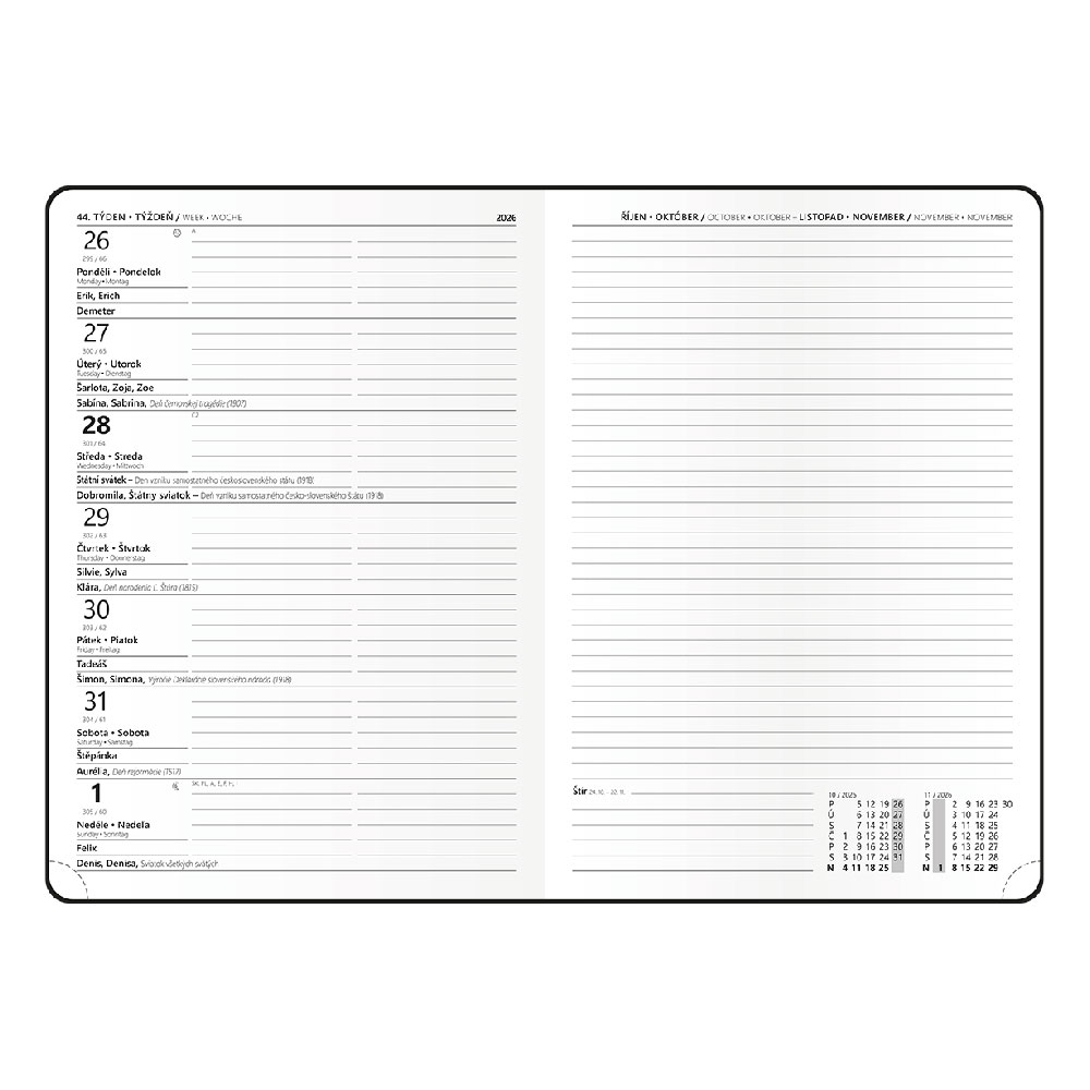 Týždenný diár 2026 Zoro Flexi A5 - čierna