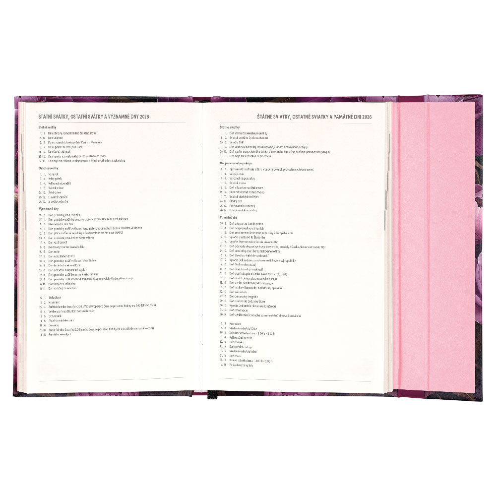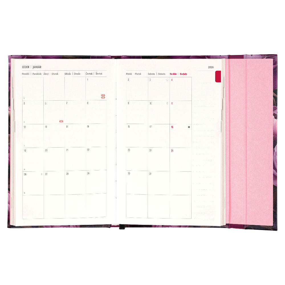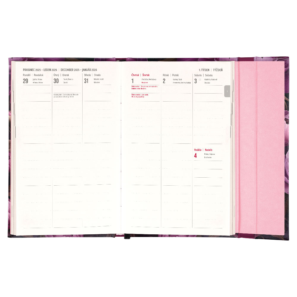 Týždenný magnetický diár 2026 A5 Fialová kvety